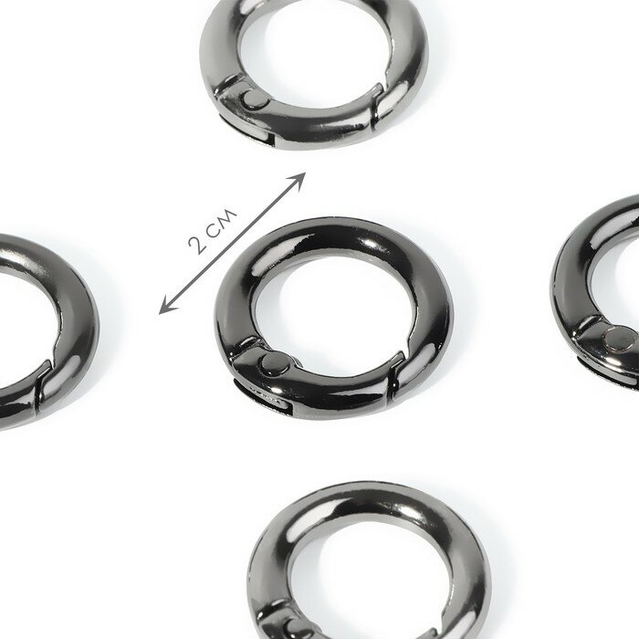 Кольцо-карабин, d = 13/20 мм, толщина - 3,5 мм, 5 шт, цвет серебряный