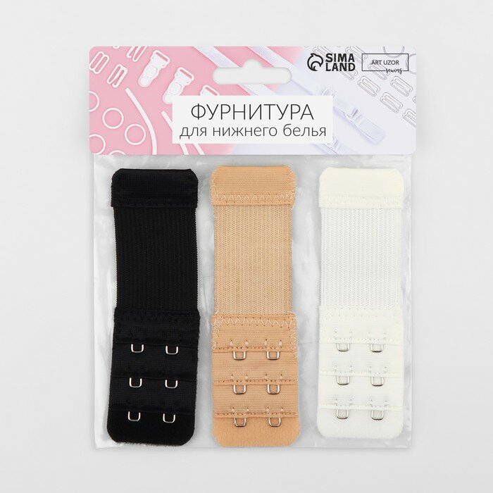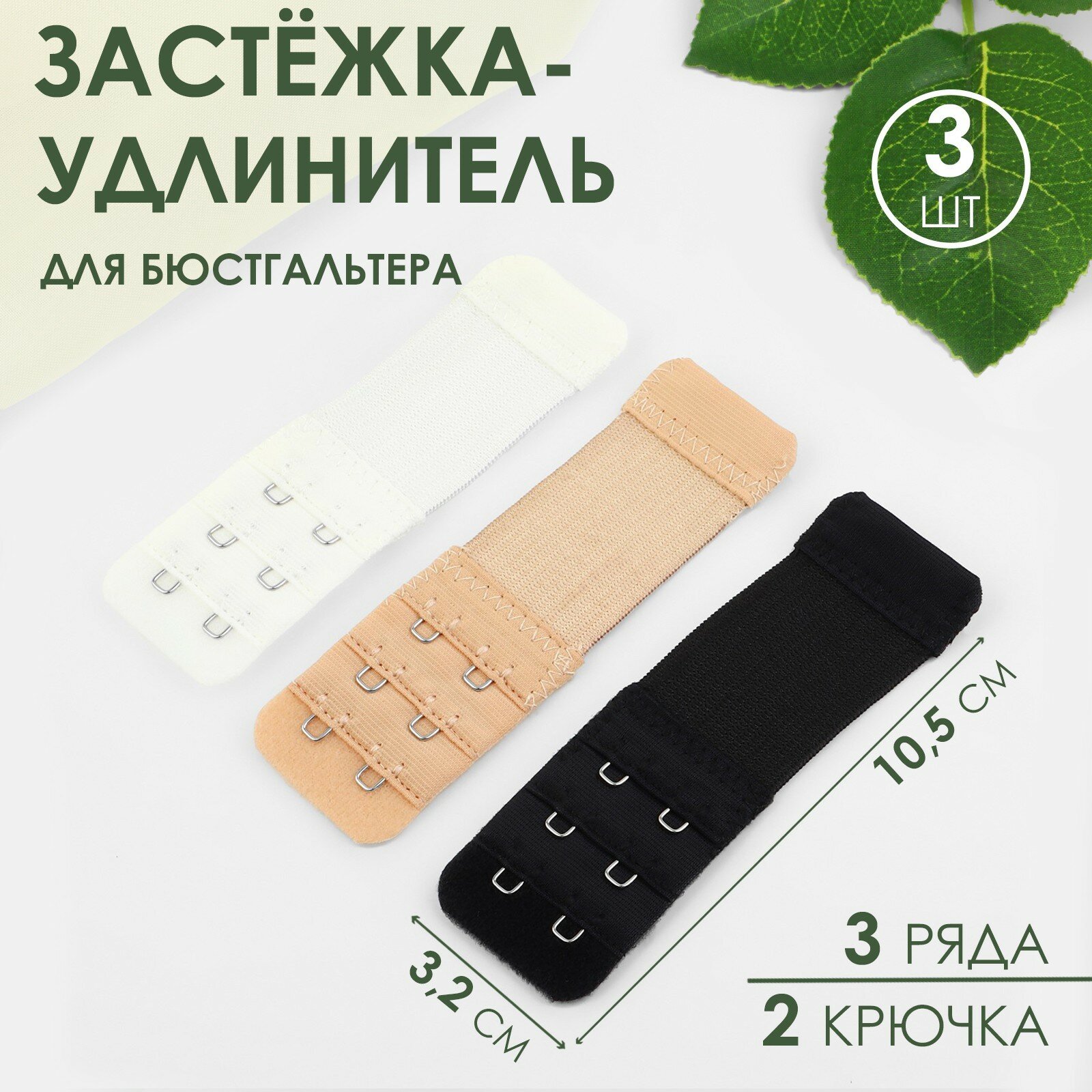 Купить Застёжка-удлинитель для бюстгальтера, 3 ряда 2 крючка, 3,2 × 10,5 см, 3 шт, цвет белый/бежевый/чёрный