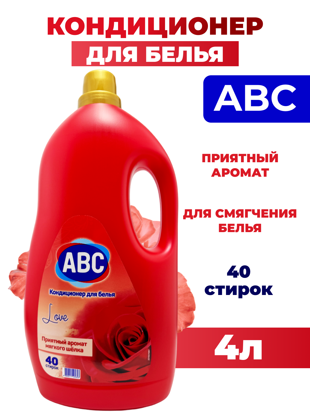 АБЦ / ABC - Кондиционер для белья с приятным ароматом шёлка Love (Камелия), 10 стирок, 1 л