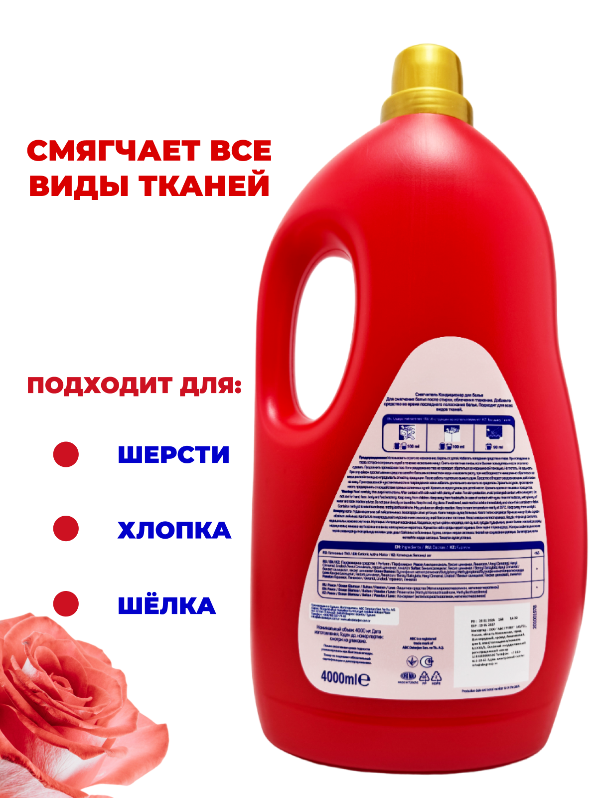 Кондиционер для белья ABC "Розы страсти", антибактериальный, гипоаллергенный, 2л