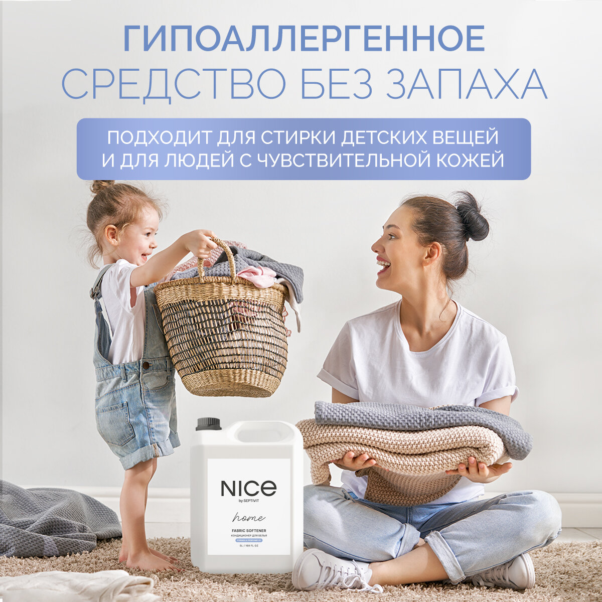 Кондиционер для стирки NICE by SEPTIVIT / Кондиционер для белья / Кондиционер-ополаскиватель 5 л