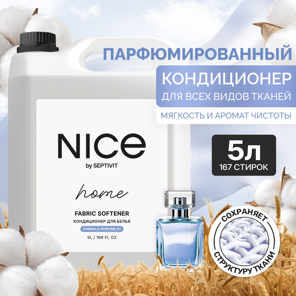 Кондиционер-ополаскиватель для белья Nice BY Septivit Formula 01, парфюмированный, 5 л