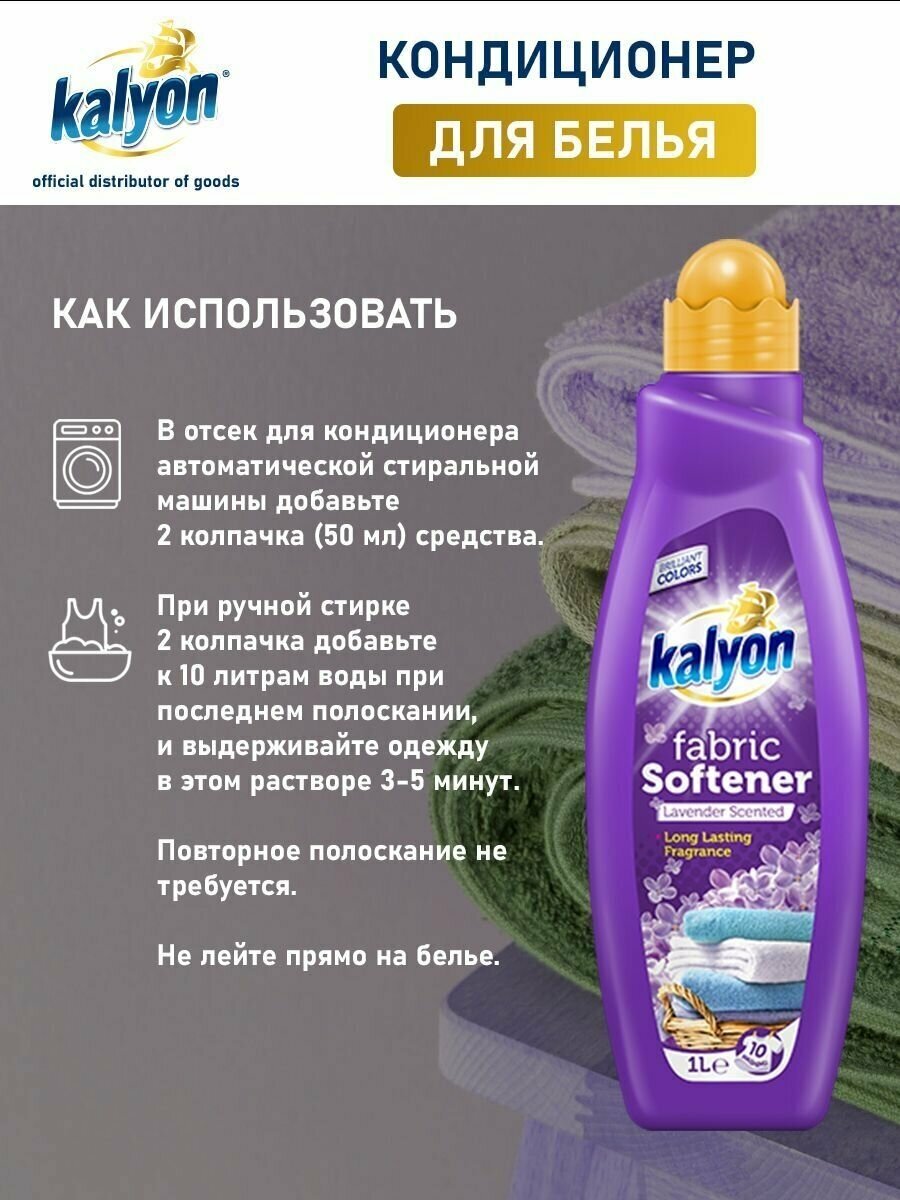 СохранитьКондиционер ополаскиватель для белья KALYON FABRIC SOFTENER Аромат Лаванды 1 л интересное: