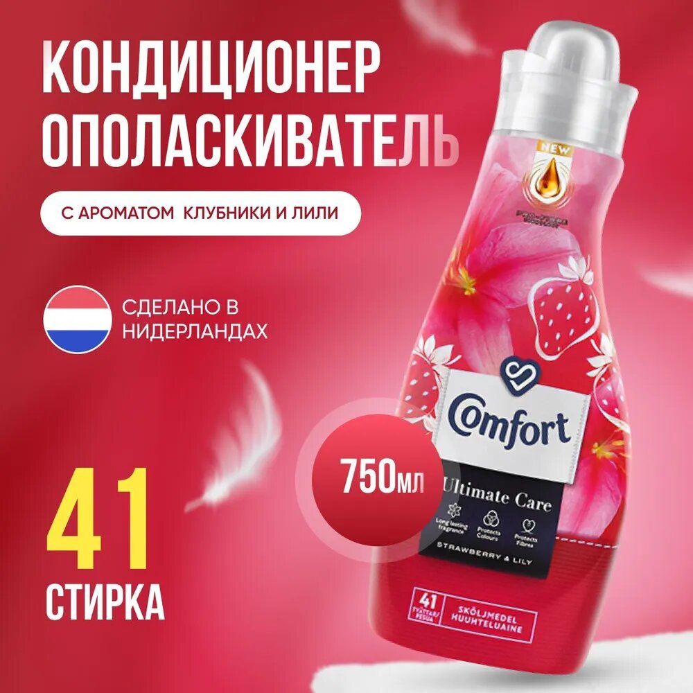 СохранитьКондиционер-ополаскиватель для стирки белья Comfort Strawberry & Lily (Клубники и лилии) - 750 мл. интересное: