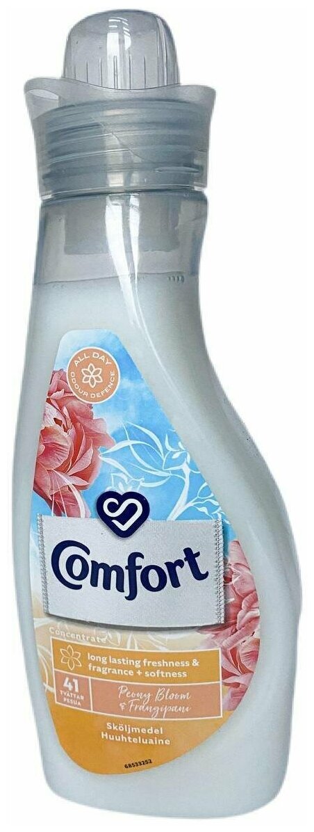 Кондиционер для белья Comfort Peony Bloom & Frangipani 750ml, с ароматом пиона и руссо-темплового дерева, 41 стирка, из Финляндии
