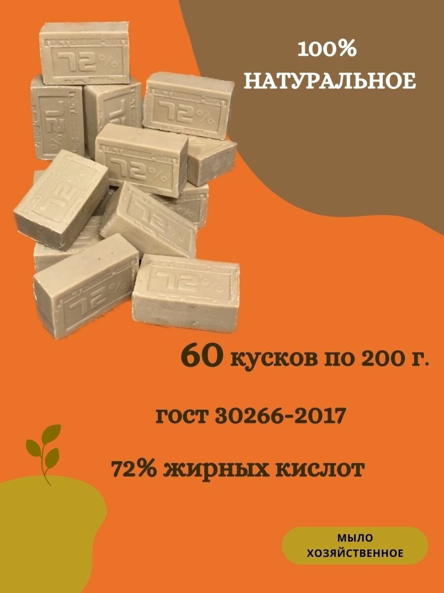 Купить Мыло хозяйственное натуральное ГОСТ 72% 200гр, кусковое твердое гипоаллергенное мыло для мытья рук и стирки 60 штук