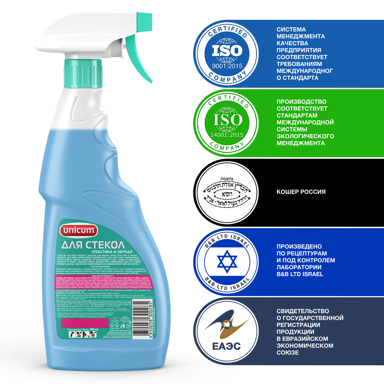 Спрей Unicum для стекол, пластика, зеркал, 500 мл
