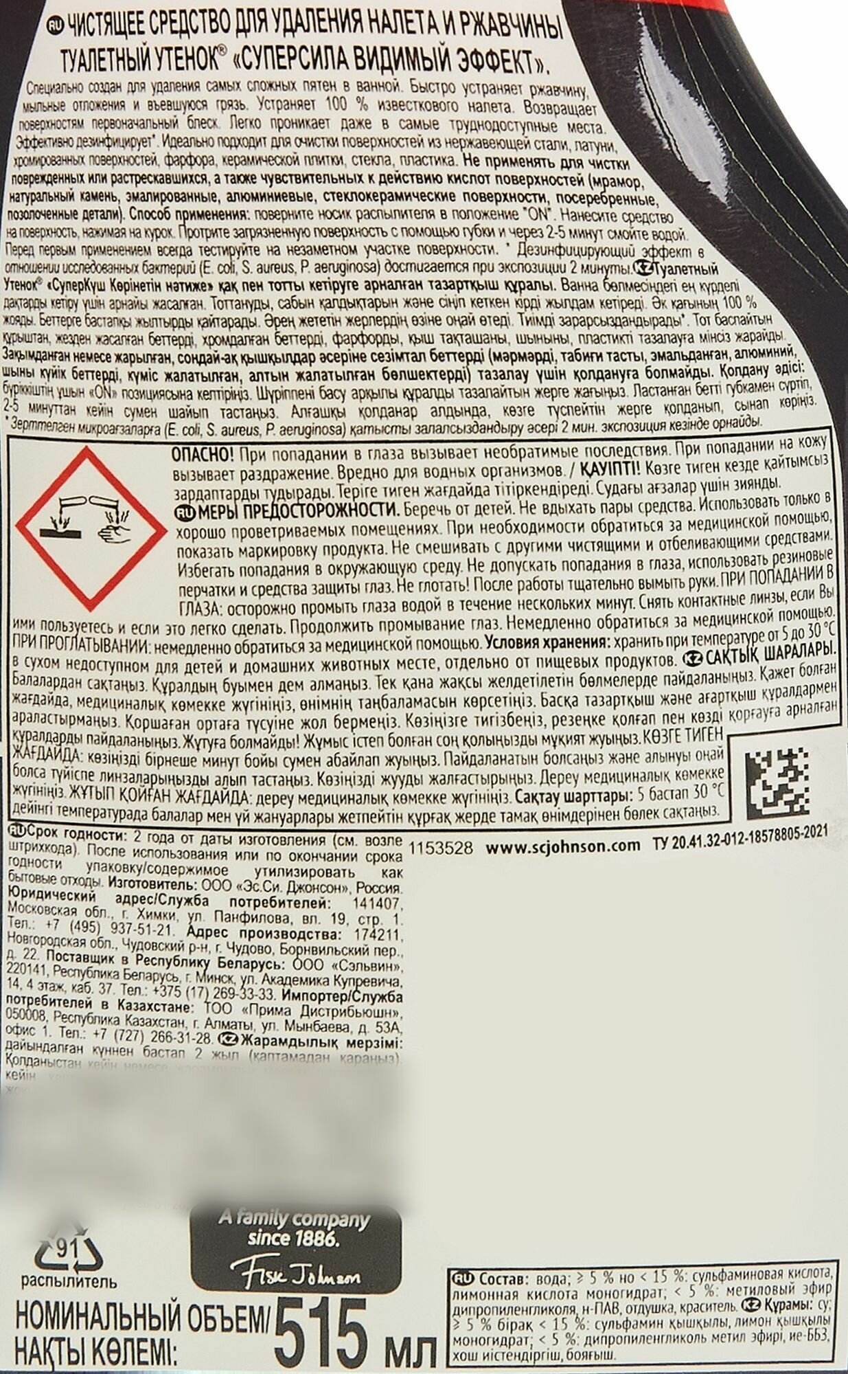 Туалетный Утенок Для удаления налета и ржавчины "Супер Сила Видимый Эффект", 515 мл интересное: