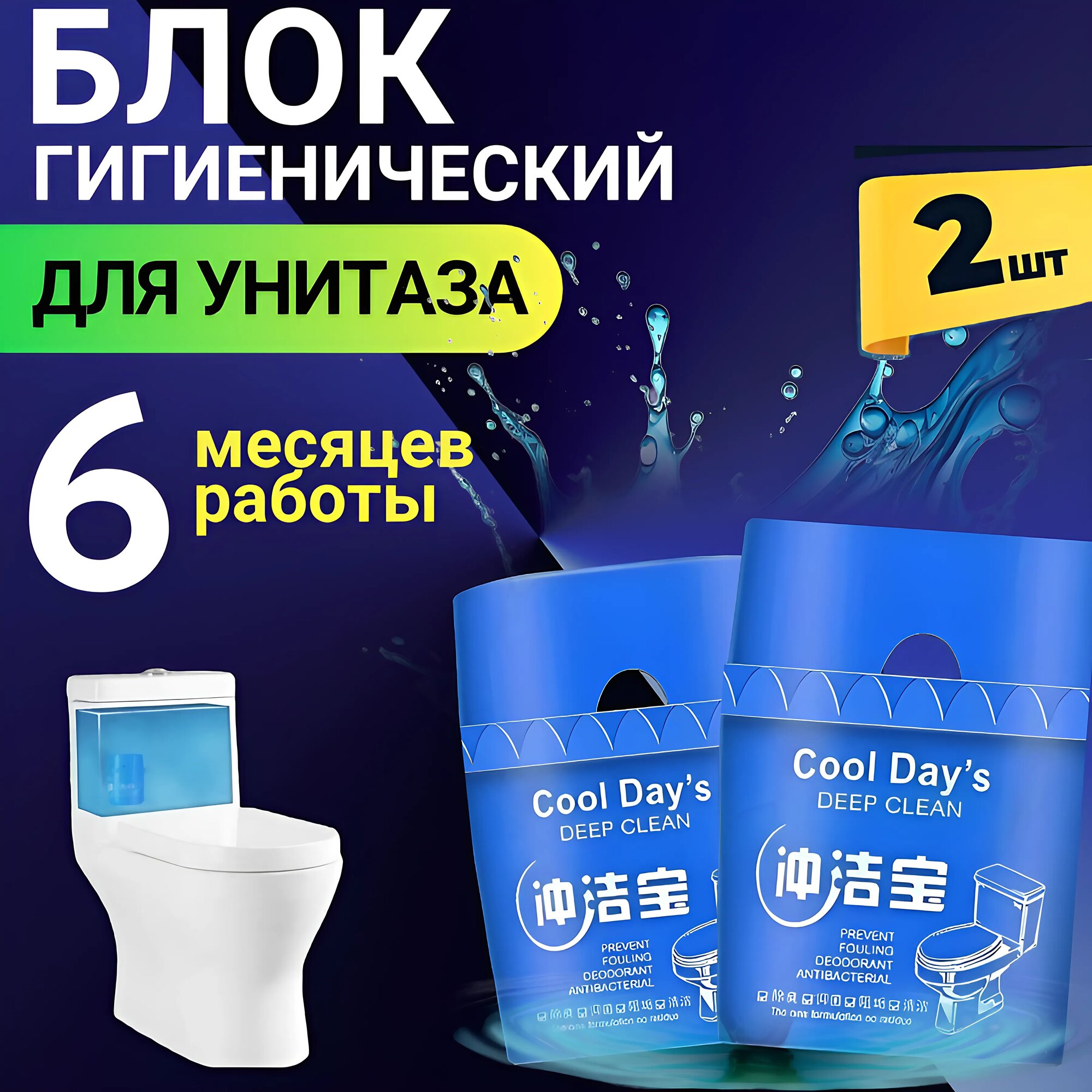 Таблетки (блок) для унитаза в бачок с антибактериальным эффектом (комплект 2шт)