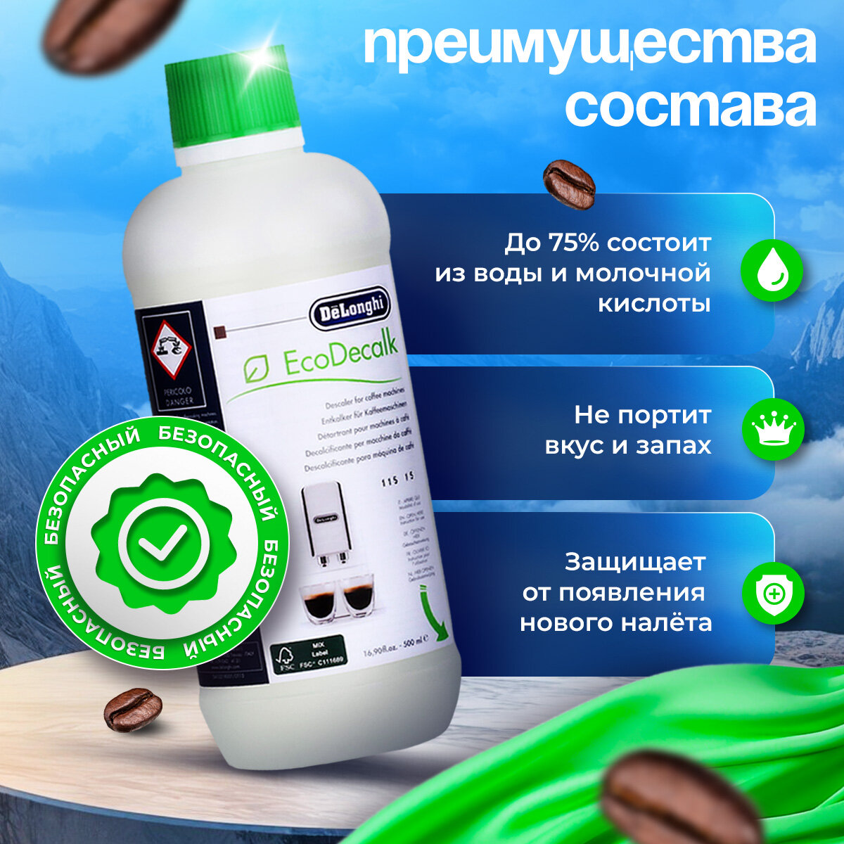 | Способ применения | Используйте средство EcoDecalk регулярно, это гарантирует продолжительный срок службы вашей кофемашины или кофеварки. |