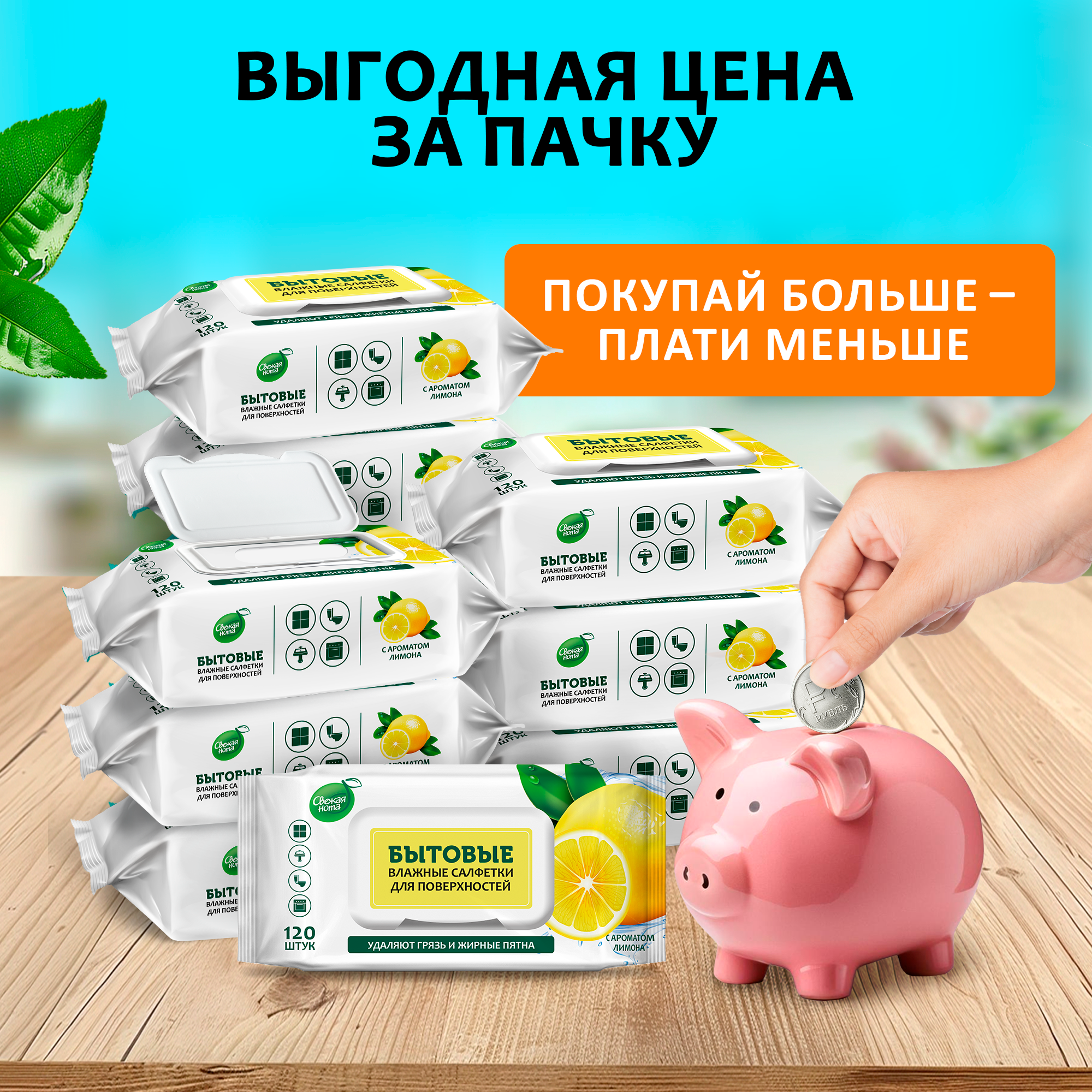 Салфетки влажные бытовые для поверхностей и уборки Свежая нота лимон 120 шт х 6 интересное: