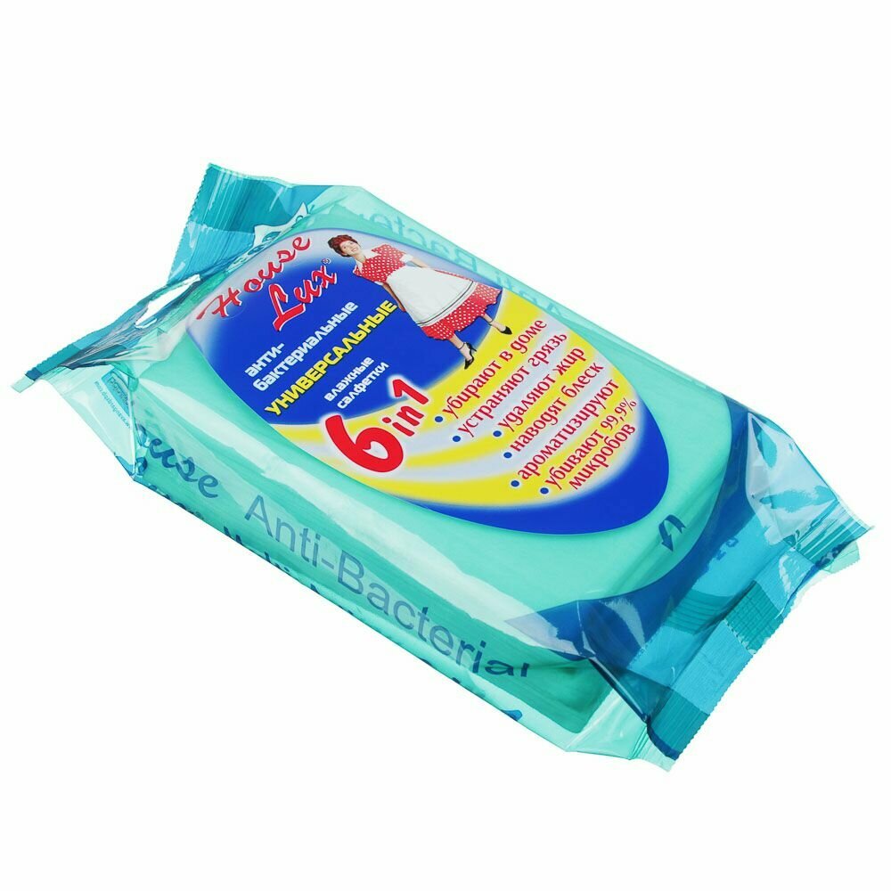Влажные салфетки универсальные антибактериальные 6 в 1 House Lux, 322 г, 80 шт.