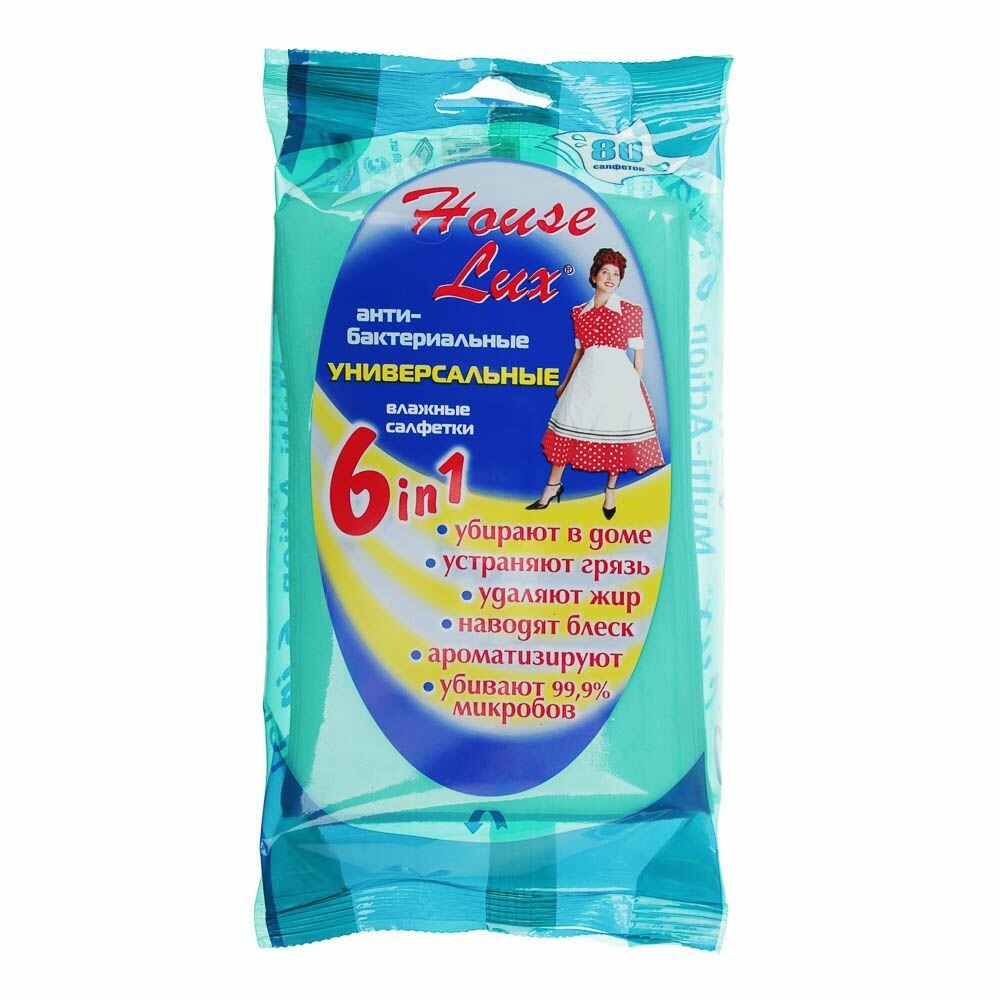 Купить House Lux Салфетки влажные универсальные антибактериальные для уборки 6 в 1, 80шт 448-247