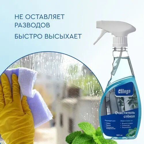 Средство для мытья окон и зеркал Clingo, очиститель стекол, спрей для стекол с ароматом мяты 500 мл арт. 990007