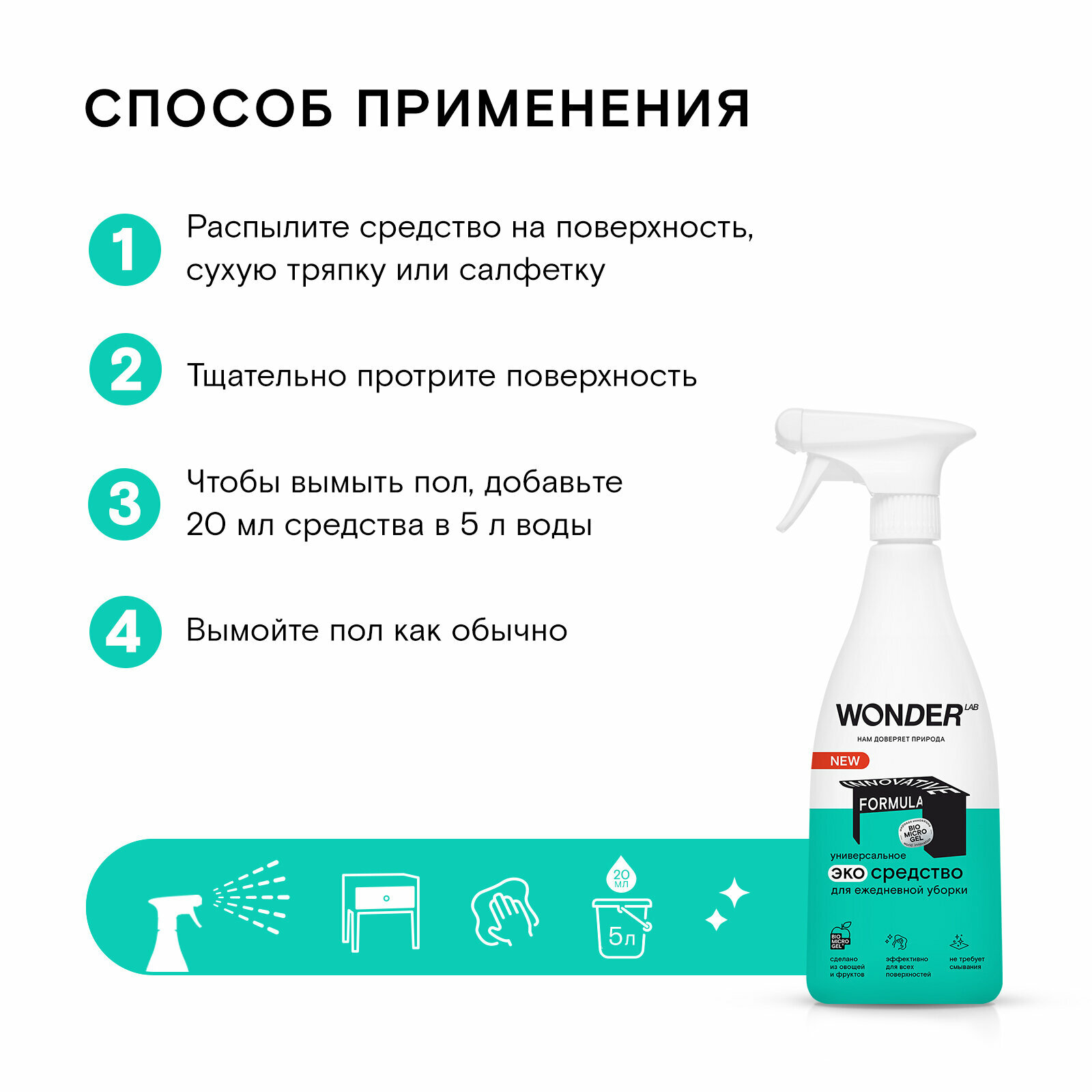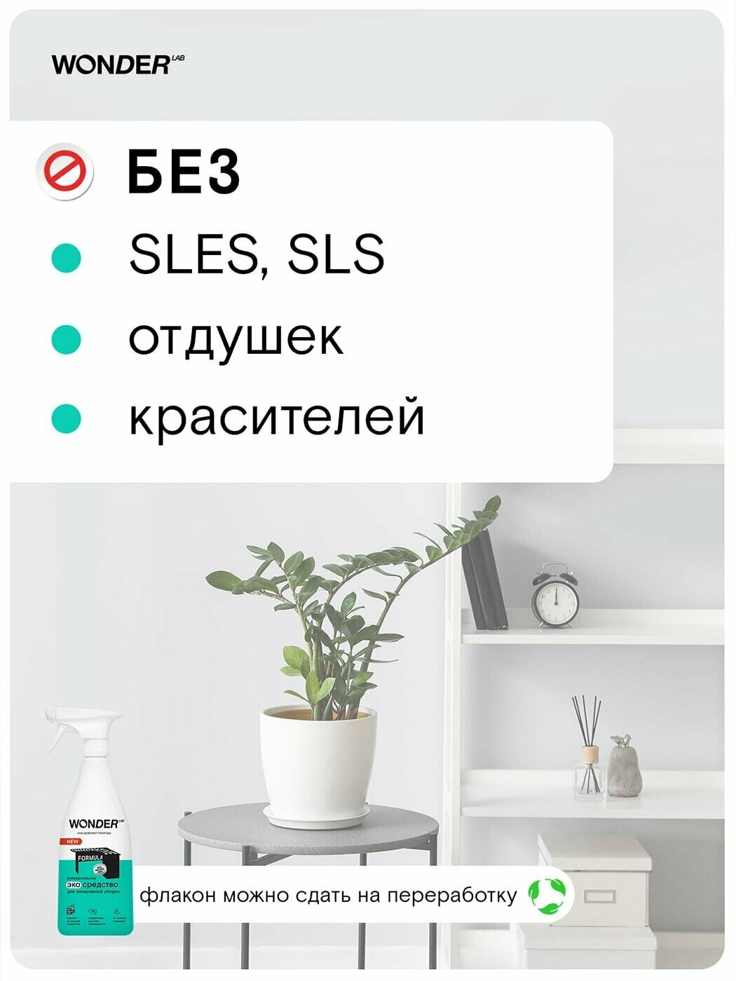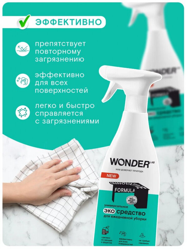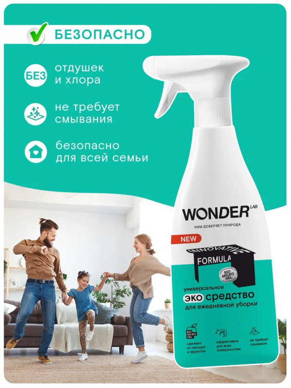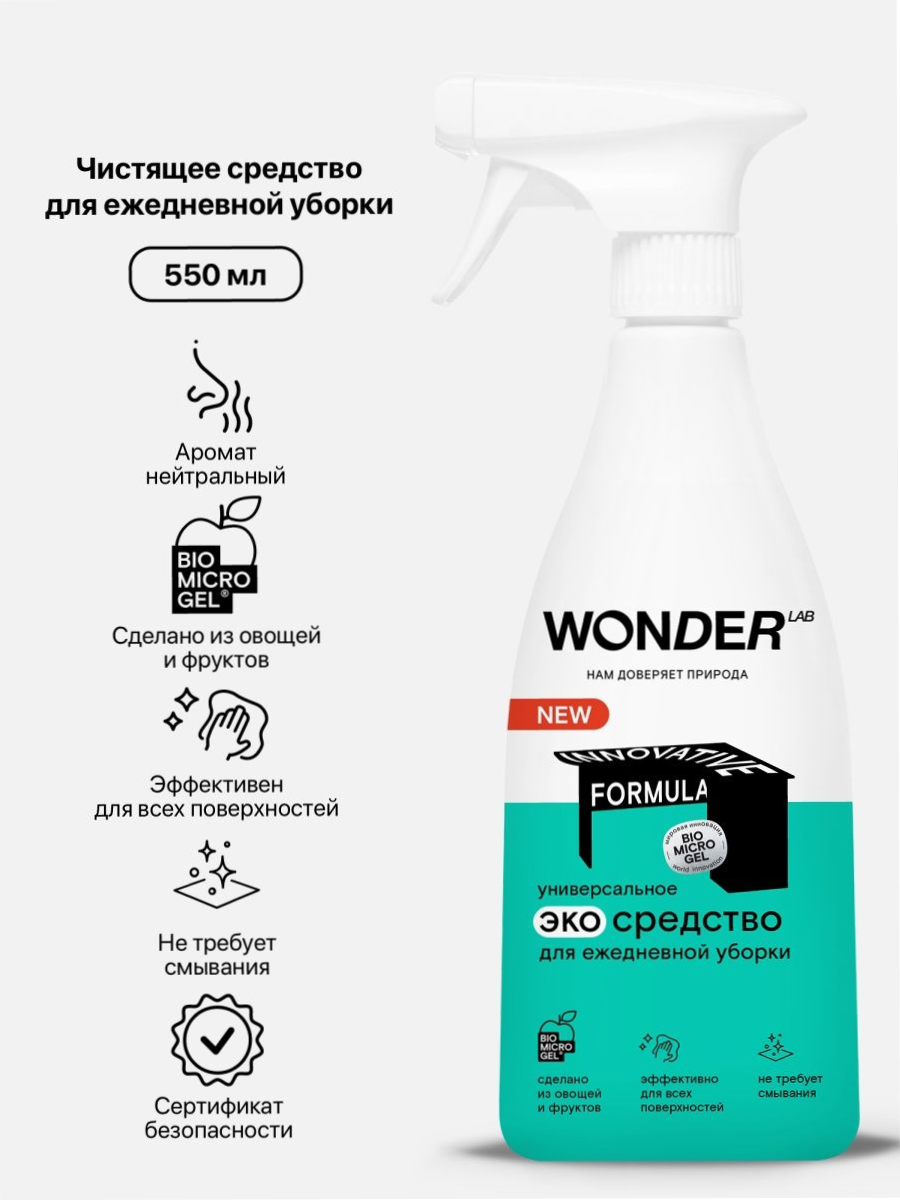 Wonder Lab - универсальное эко-средство для уборки дома 550мл, антипыль, полироль