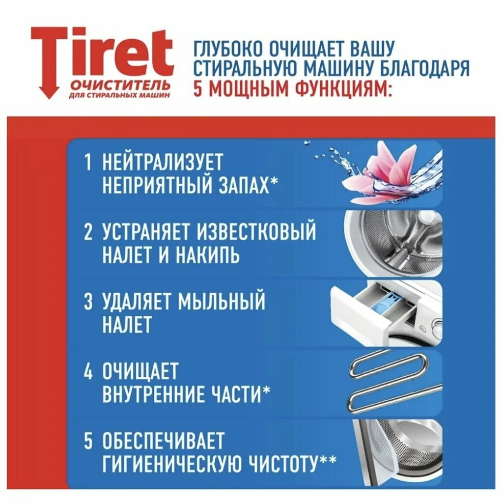 Очиститель стиральных машин Tiret, 250 миллилитров, 6 штук