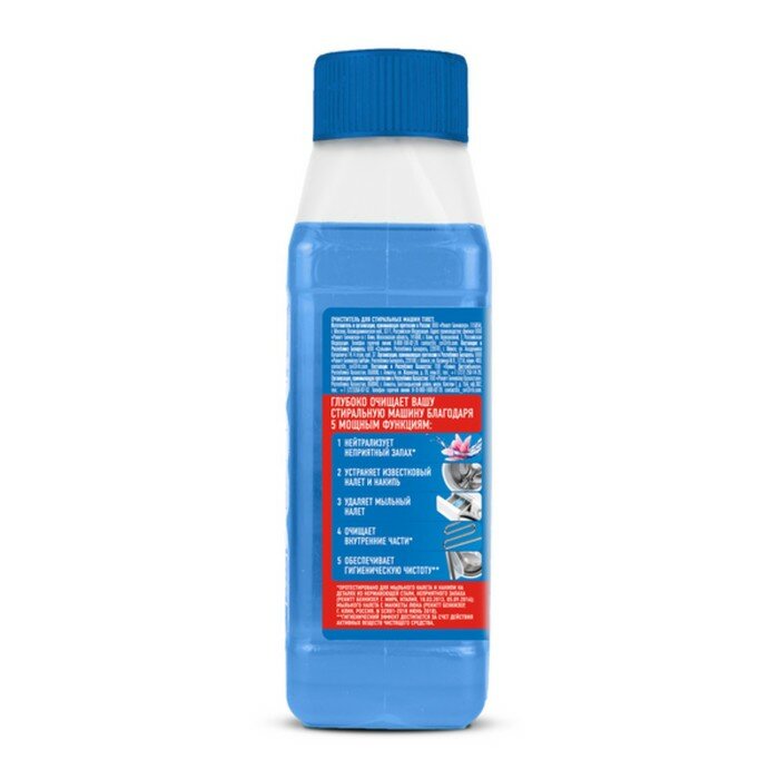 | Способ применения | убедитесь, что внутри стиральной машины нет белья. Открутите крышку. Добавьте небольшое количество средства на губку и протрите отсеки для моющего средства и ополаскивателя. Залейте остаток жидкости в отсек для моющего средства. Запустите температурный режим 60⁰. Для наилучшего результата рекомендуется запускать 2 пустых цикла в год при температурном режиме 60⁰, используя каждый раз 1 бутылку |