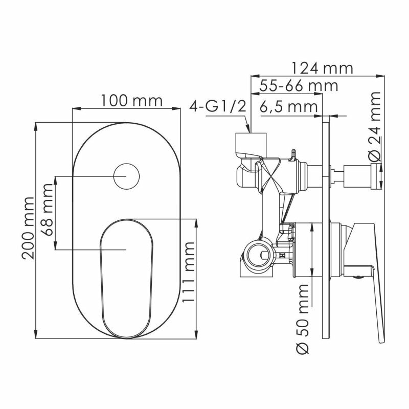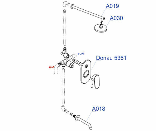 Смеситель для ванны и душа со встроенной системой монтажа WasserKRAFT Donau 5361
