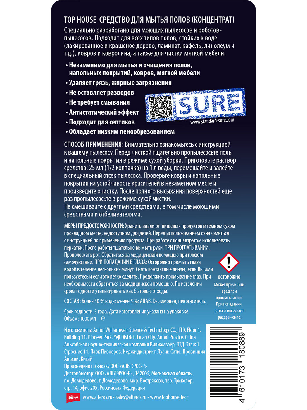Концентрированное средство для моющих пылесосов TOP HOUSE, 1л. интересное: