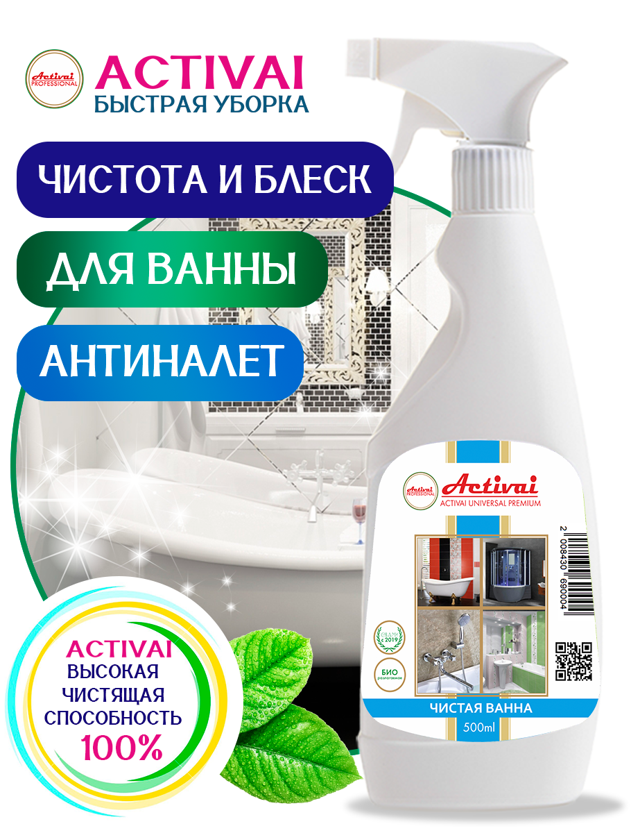 Чистящее средство для ванны, средство от известкового налета, удалитель ржавчины, средство от плесени, чистящее средство для акриловых ванн, антиналет, химия для бассейна, бытовая химия, концентрат, спрей 500 мл. Быстрая уборка Activai PROFESSIONAL интересное: