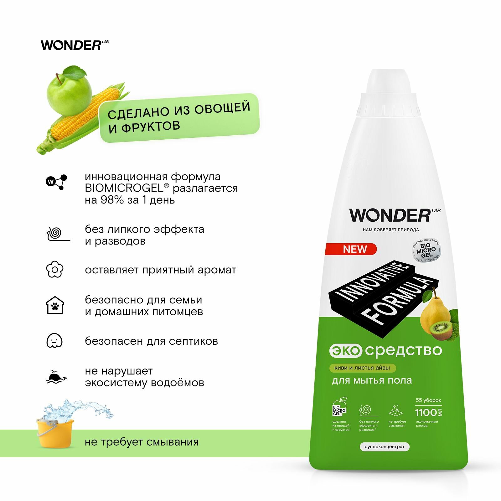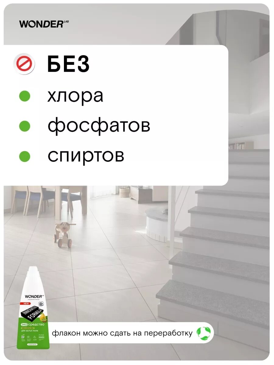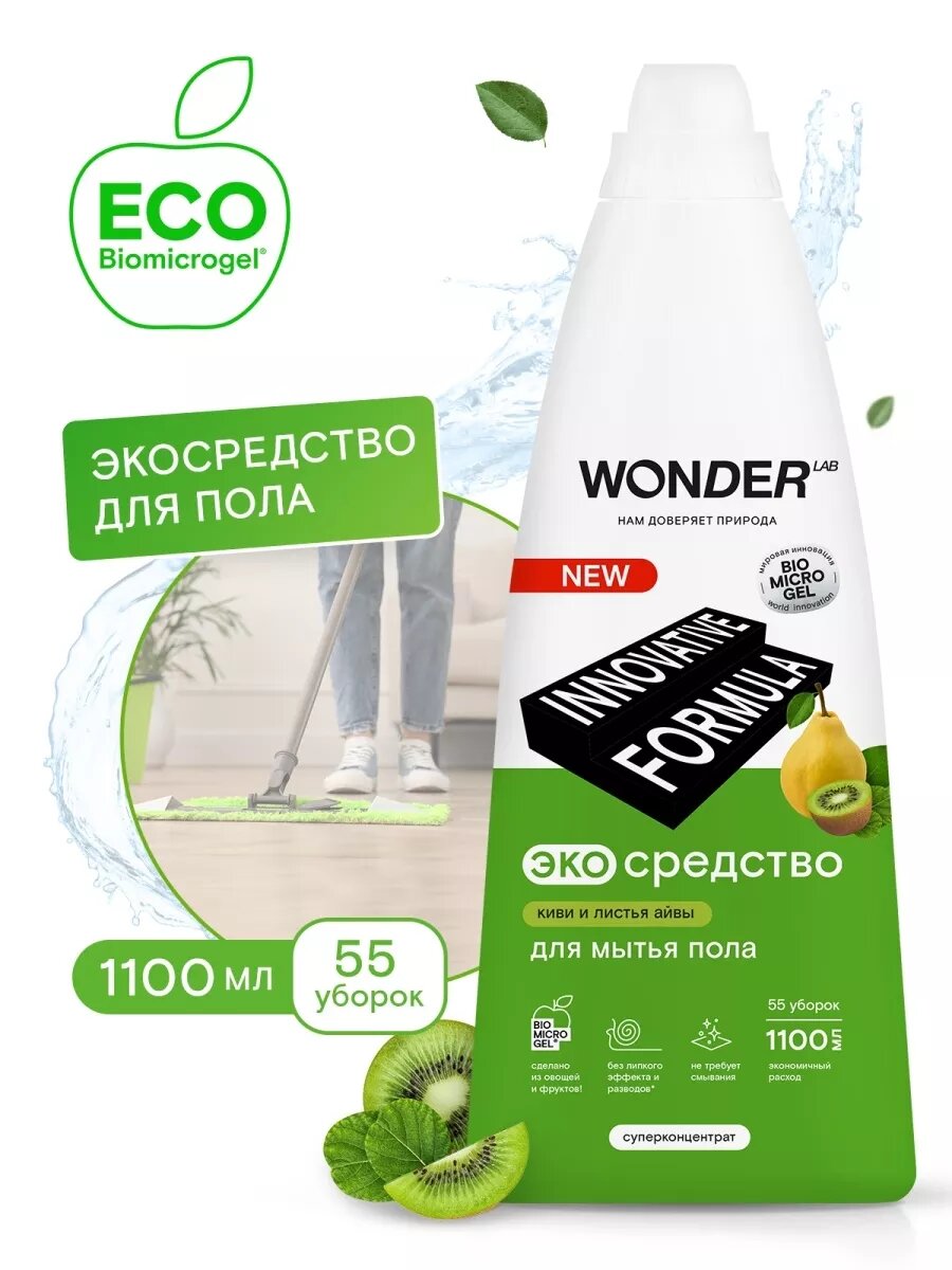 СохранитьСредство для мытья пола WONDER LAB ЭКО с ароматом киви и листьев айвы 1100 мл 4680068931926 интересное: