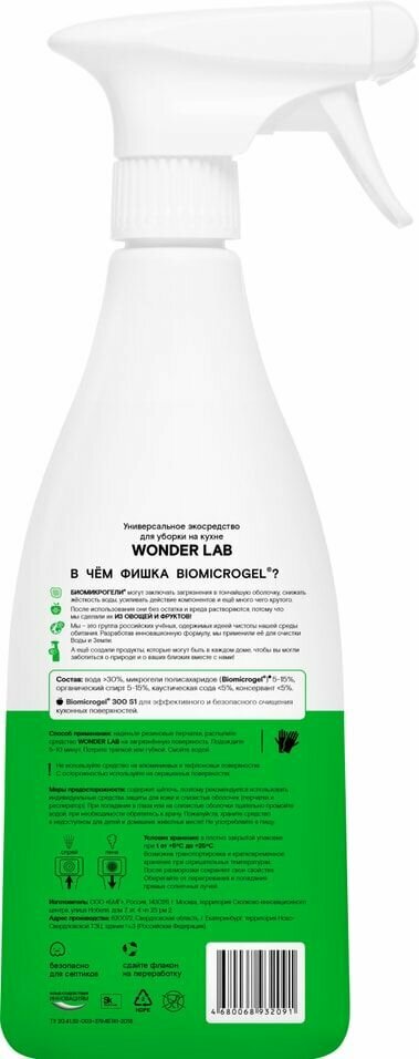 Средство для уборки на кухне WONDER LAB ЭКО Универсальное без резкого токсичного запаха 550 мл 4680068932091 интересное: