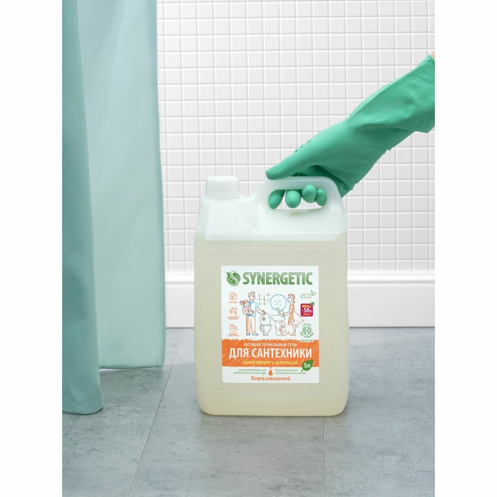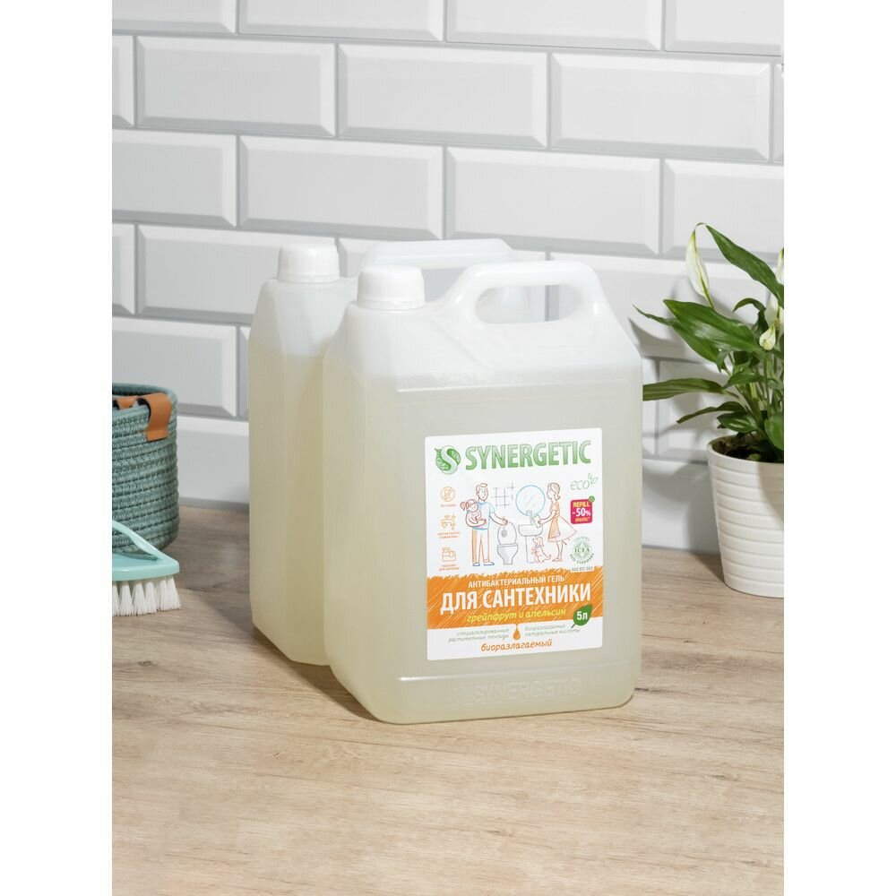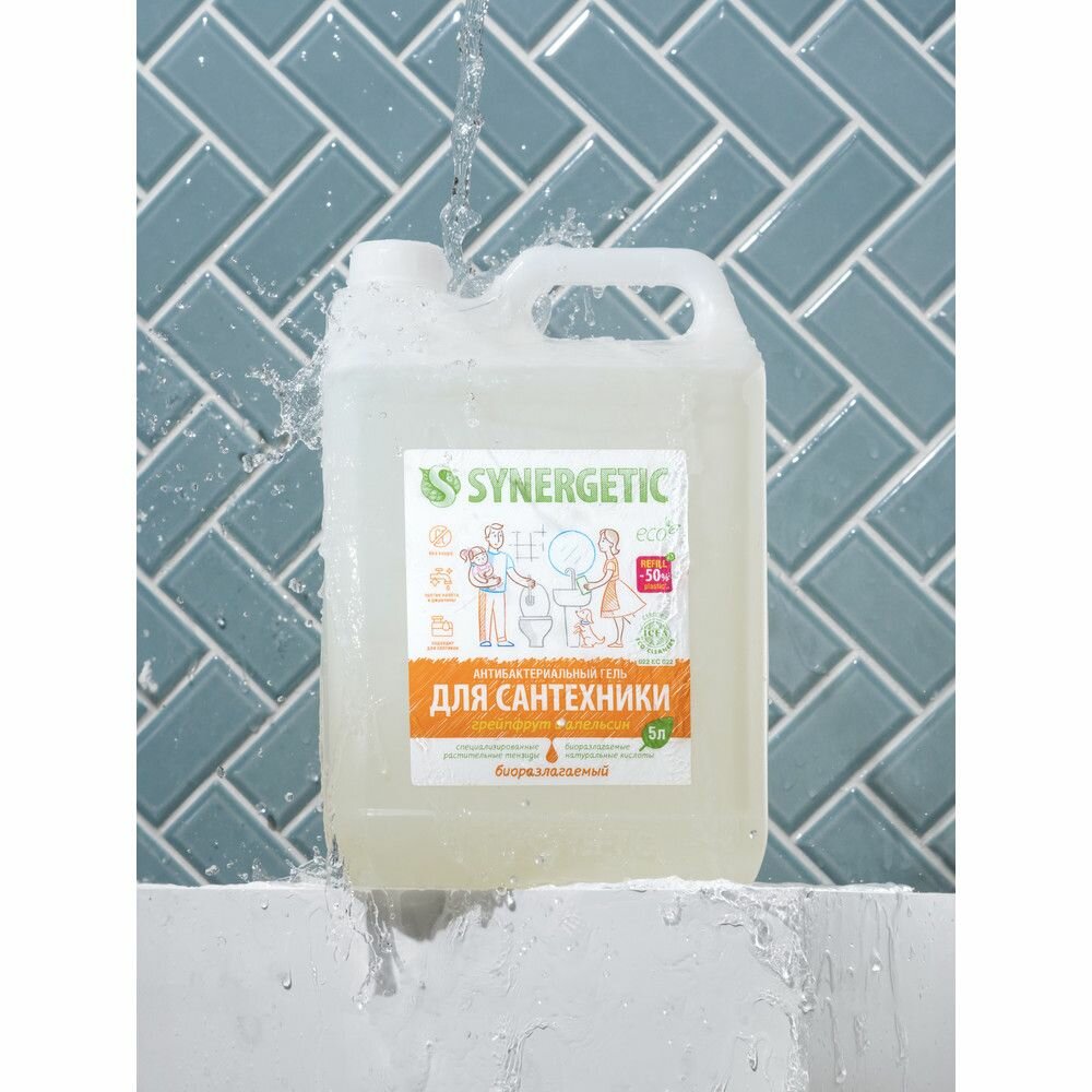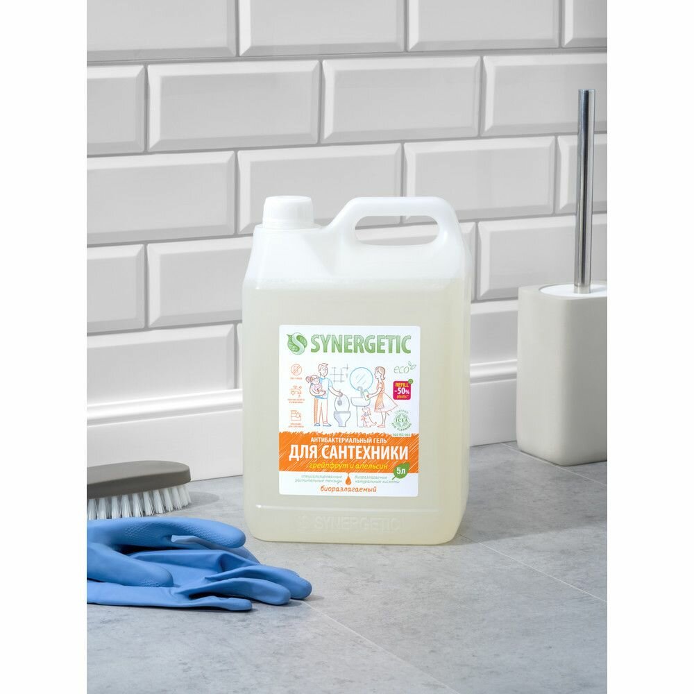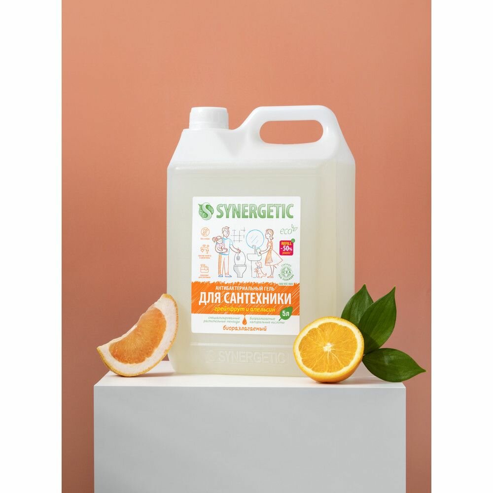 SYNERGETIC "Грейпфрут и апельсин" чистящее средство, гель для ванной, сантехники, туалета, унитаза, антибактериальное, 5 л