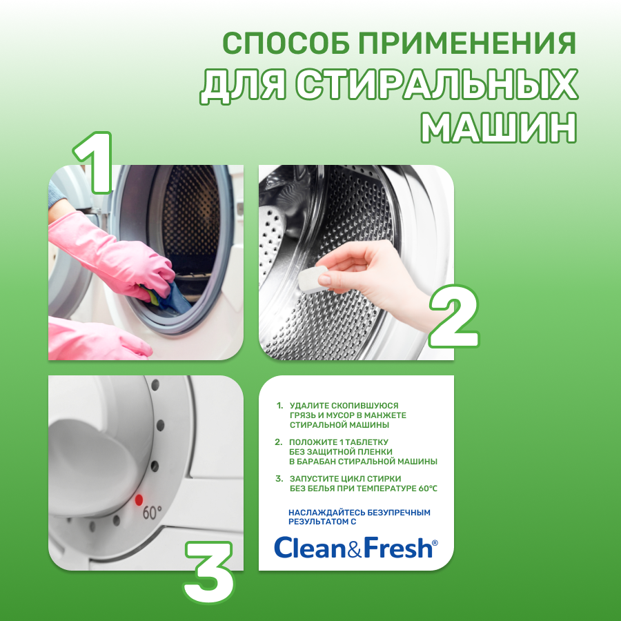 Очиститель для посудомоечных и стиральных машин Clean&Fresh 6 шт. / Таблетки для очистки посудомоечных машин интересное: