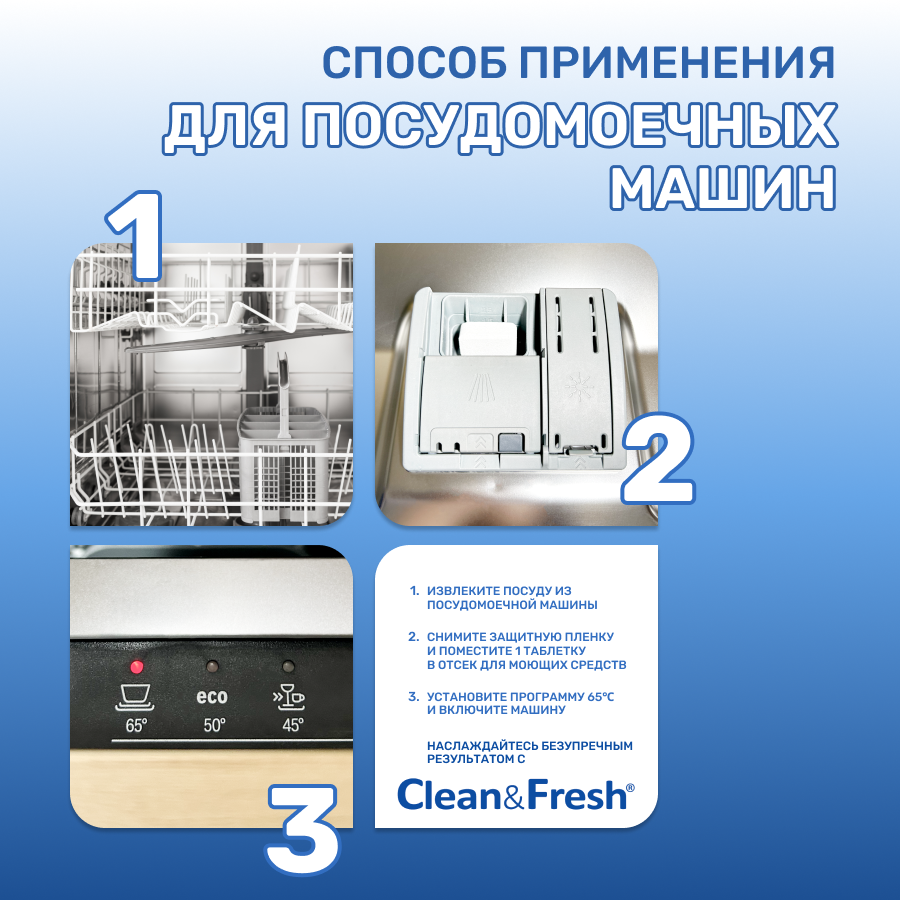 Купить Очиститель для посудомоечных и стиральных машин Clean&Fresh 6 шт. / Таблетки для очистки посудомоечных машин