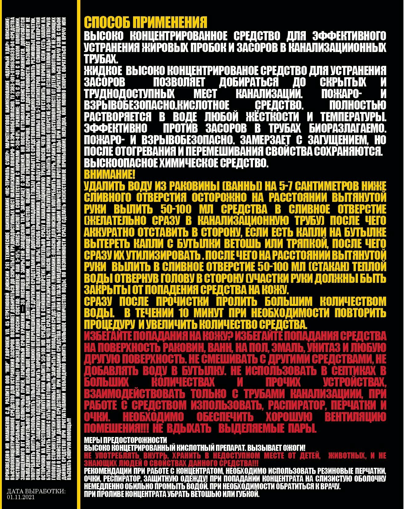 | Эффект | устранение засоров / устранение неприятных запахов |