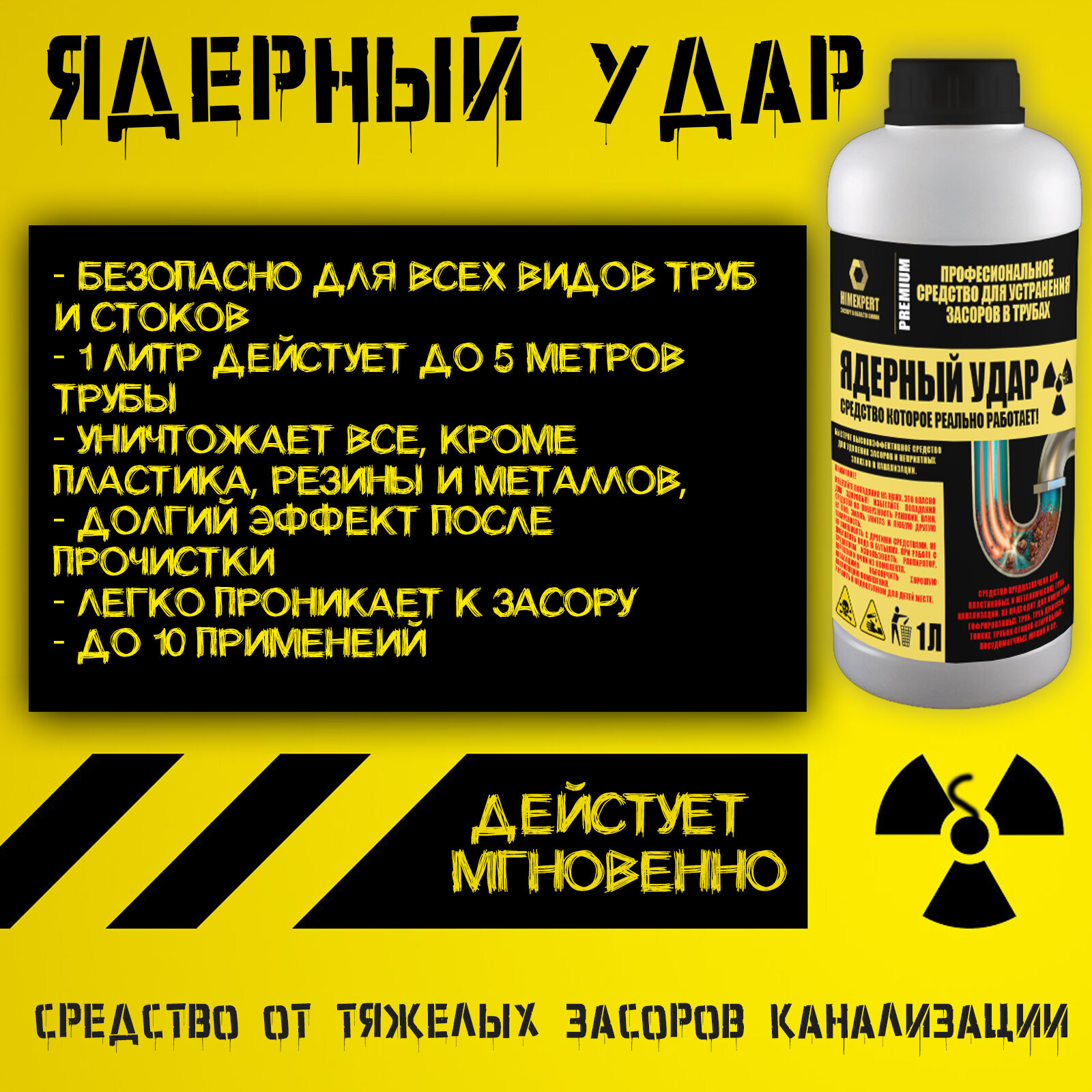 Ядерный удар. Профессиональное средство для устранения засоров в трубах. 1800 гр интересное: