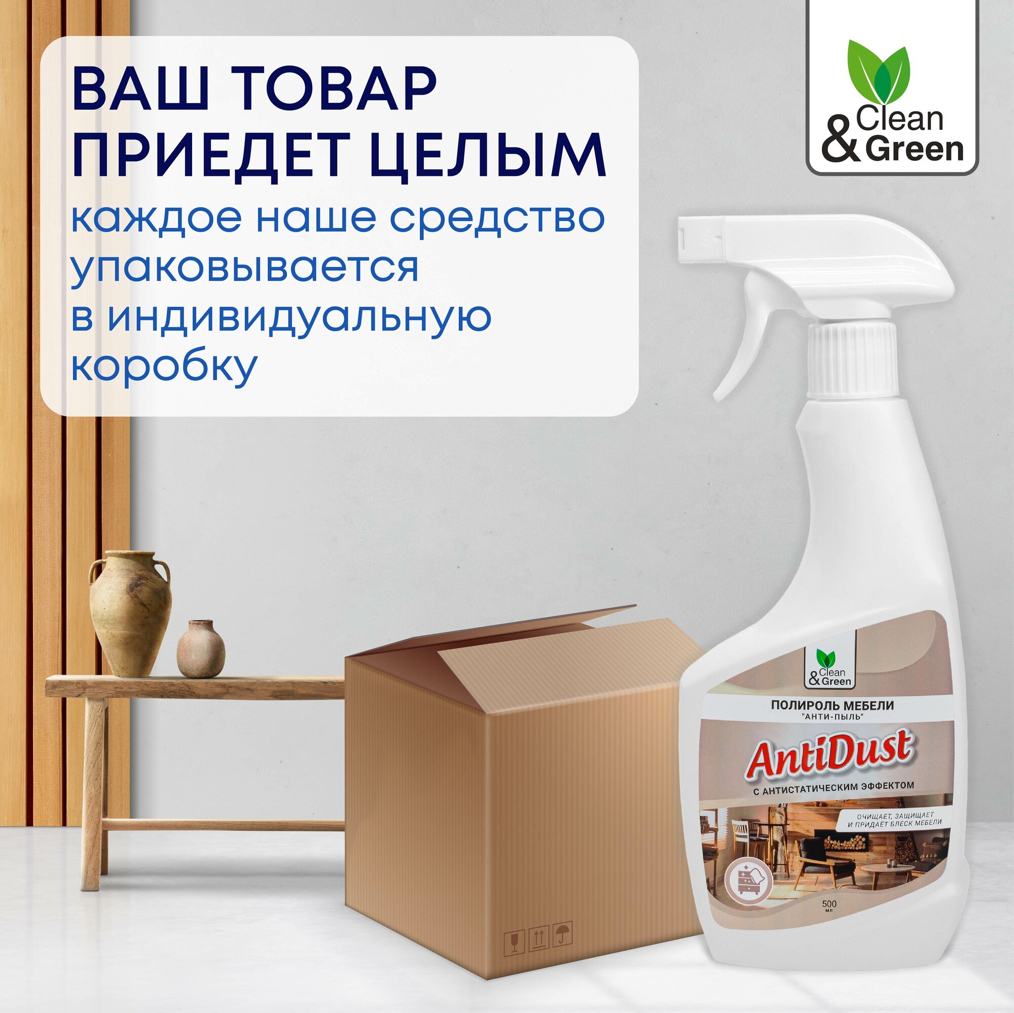| Подробная комплектация | Полироль мебели "Анти-пыль" Antidust, (триггер) 500 мл. Clean&Green CG8188 |