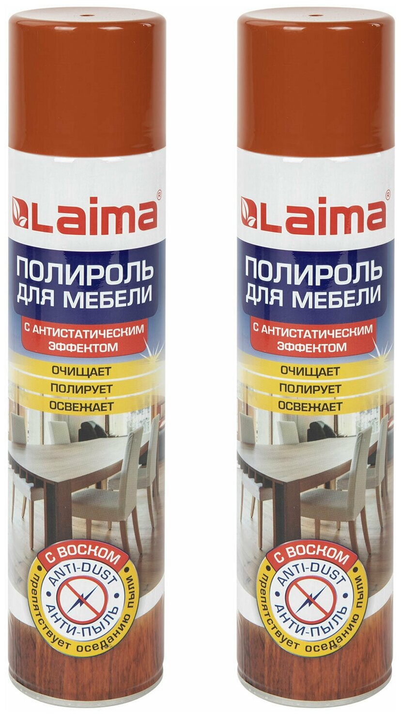 Купить Полироль средство чистящее для мебели и уборки пыли / антипыль, комплект 2 штуки, Лайма, с воском и антистатиком, 300 мл, 880616