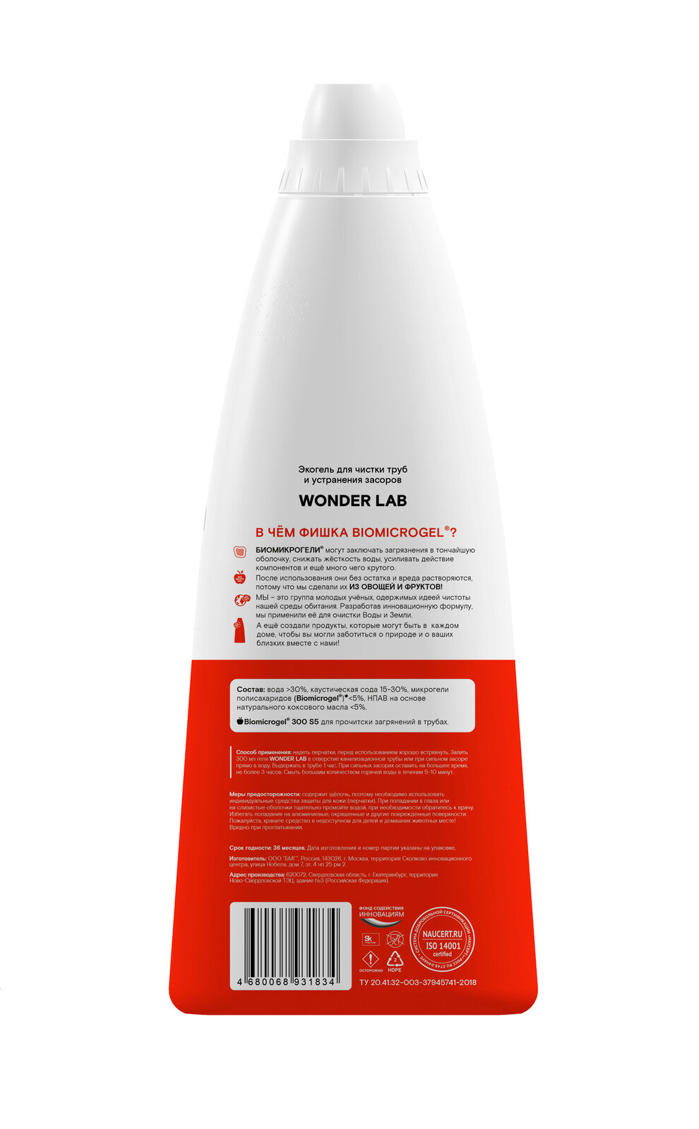 Купить WONDER LAB Экогель для чистки труб и устранения засоров 1100 мл/
