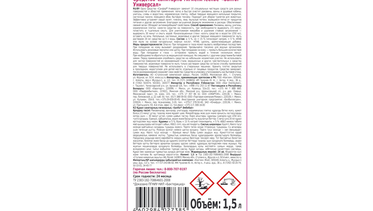 Ниже Вы можете прочитать отзывы на Чистящее средство Sanfor "Universal", 10 в 1, Ультра блеск, для дезинфекции, 1500 мл, ознакомится с подробными характеристиками, посмотреть интересные обзоры и фотографии на Чистящее средство Sanfor "Universal", 10 в 1, Ультра блеск, для дезинфекции, 1500 мл.