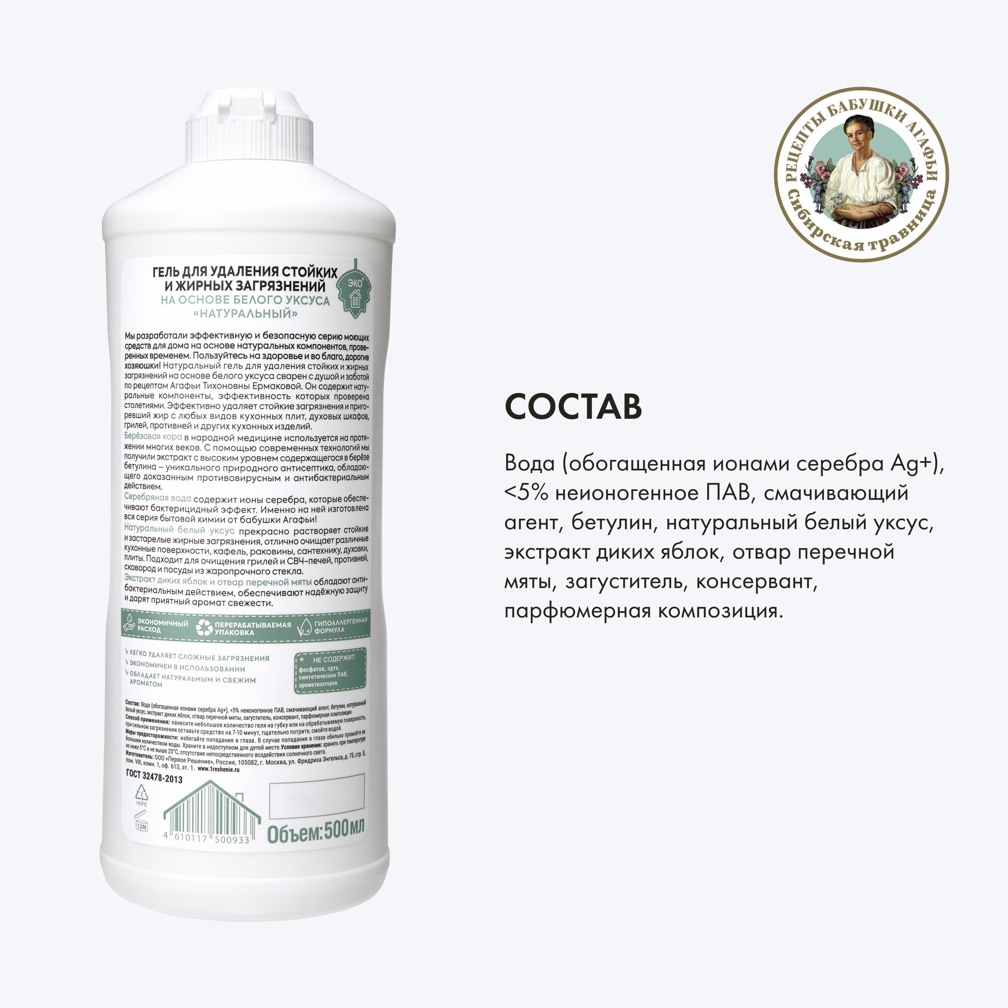 Чистящий гель Рецепты Бабушки Агафьи , Для Хозяюшек, для удаления стойких и жирных загрязнений, на основе белого уксуса, 500 мл интересное: