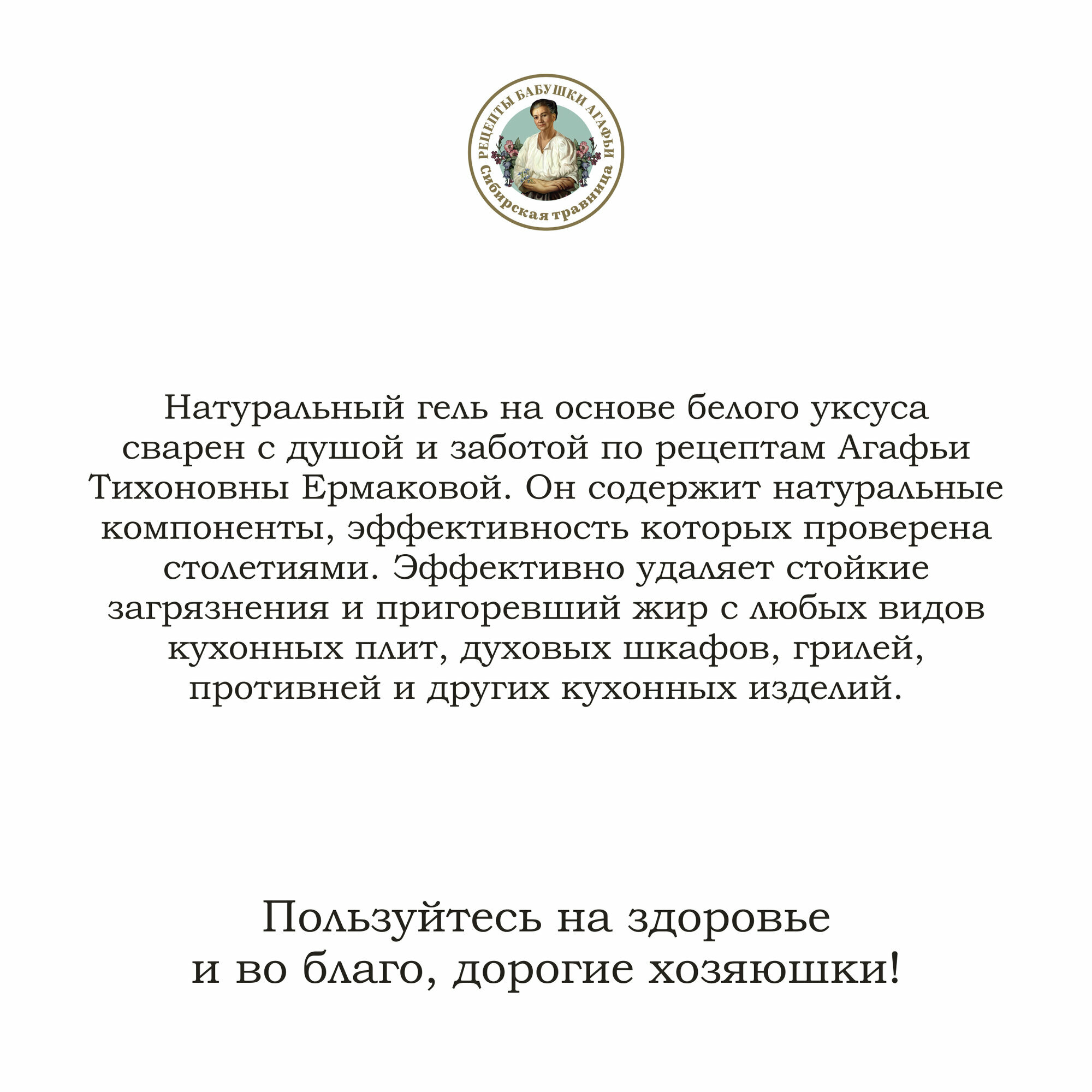 Купить Чистящий гель Рецепты Бабушки Агафьи , Для Хозяюшек, для удаления стойких и жирных загрязнений, на основе белого уксуса, 500 мл