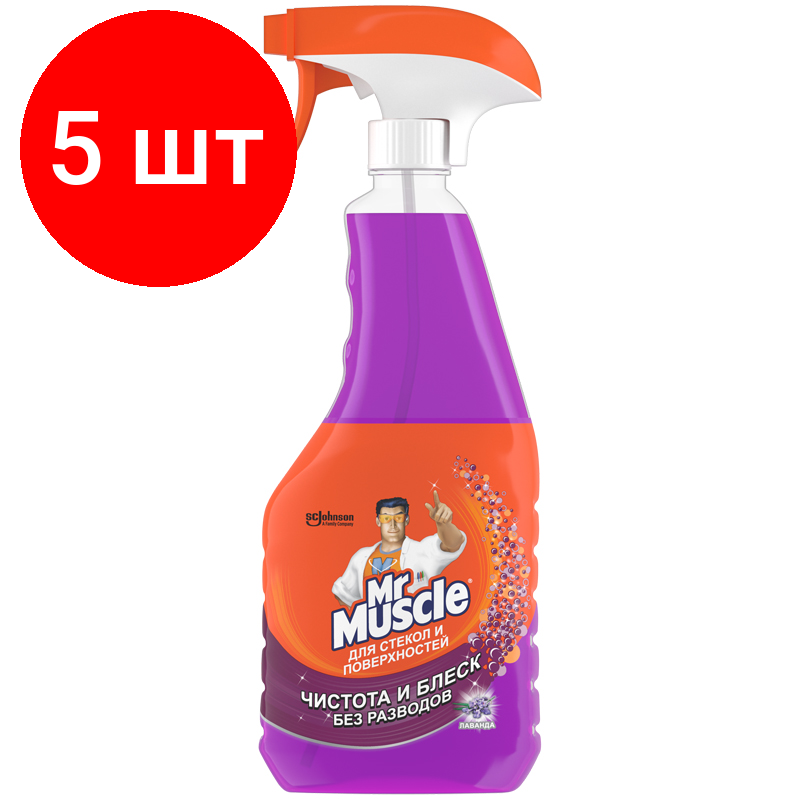 Купить Комплект 5 шт, Средство для мытья стекол и поверхностей Mr. Muscle "Лаванда", 500мл, с курком