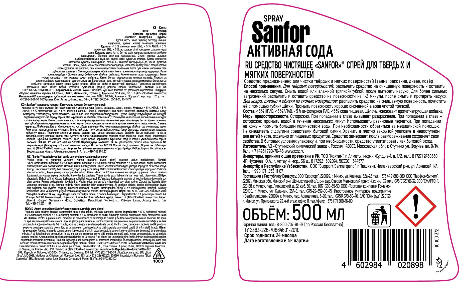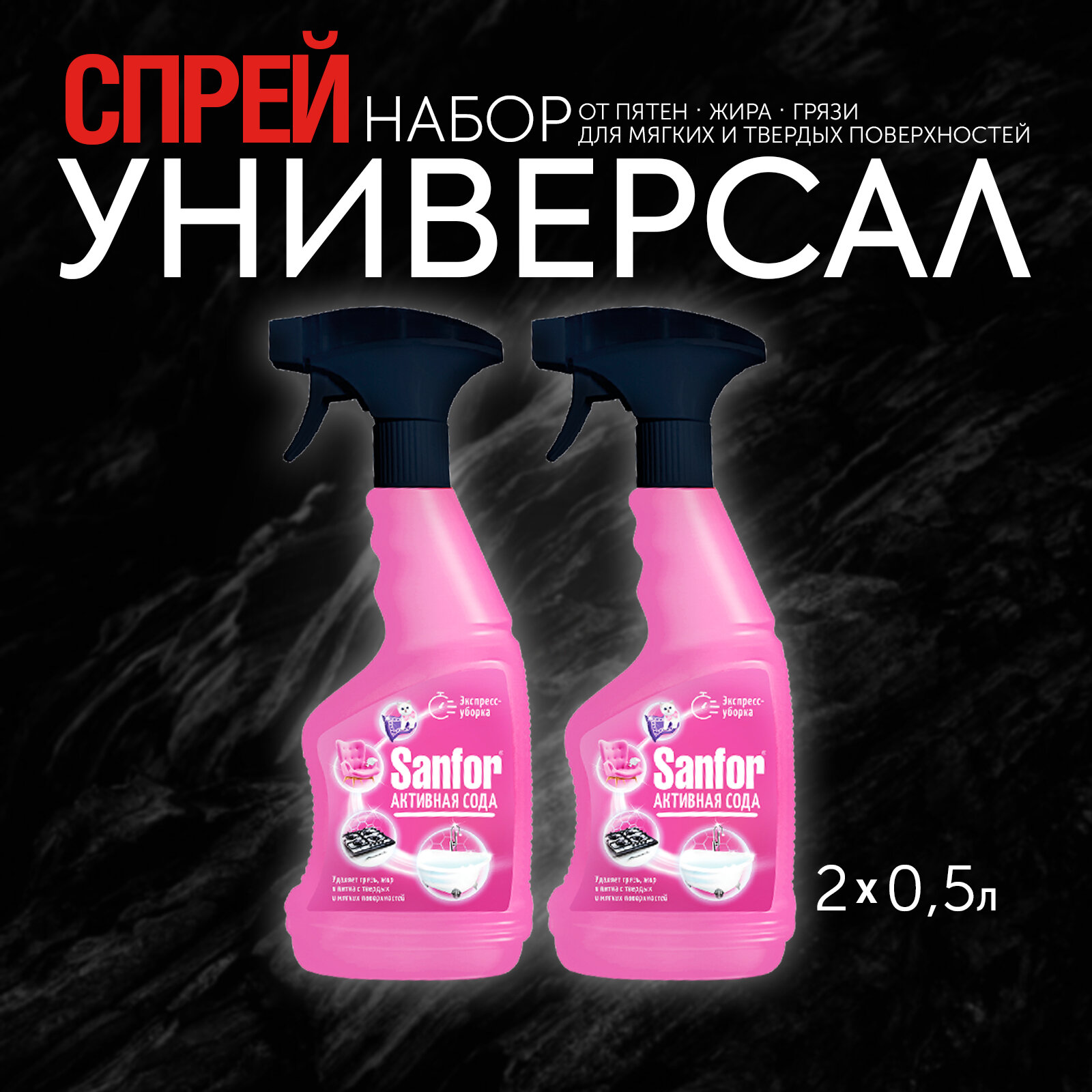 ЛОТ SANFOR спрей для твердых и мягких поверхностей экспресс-уборка, 500 мл (по 2 шт) интересное: