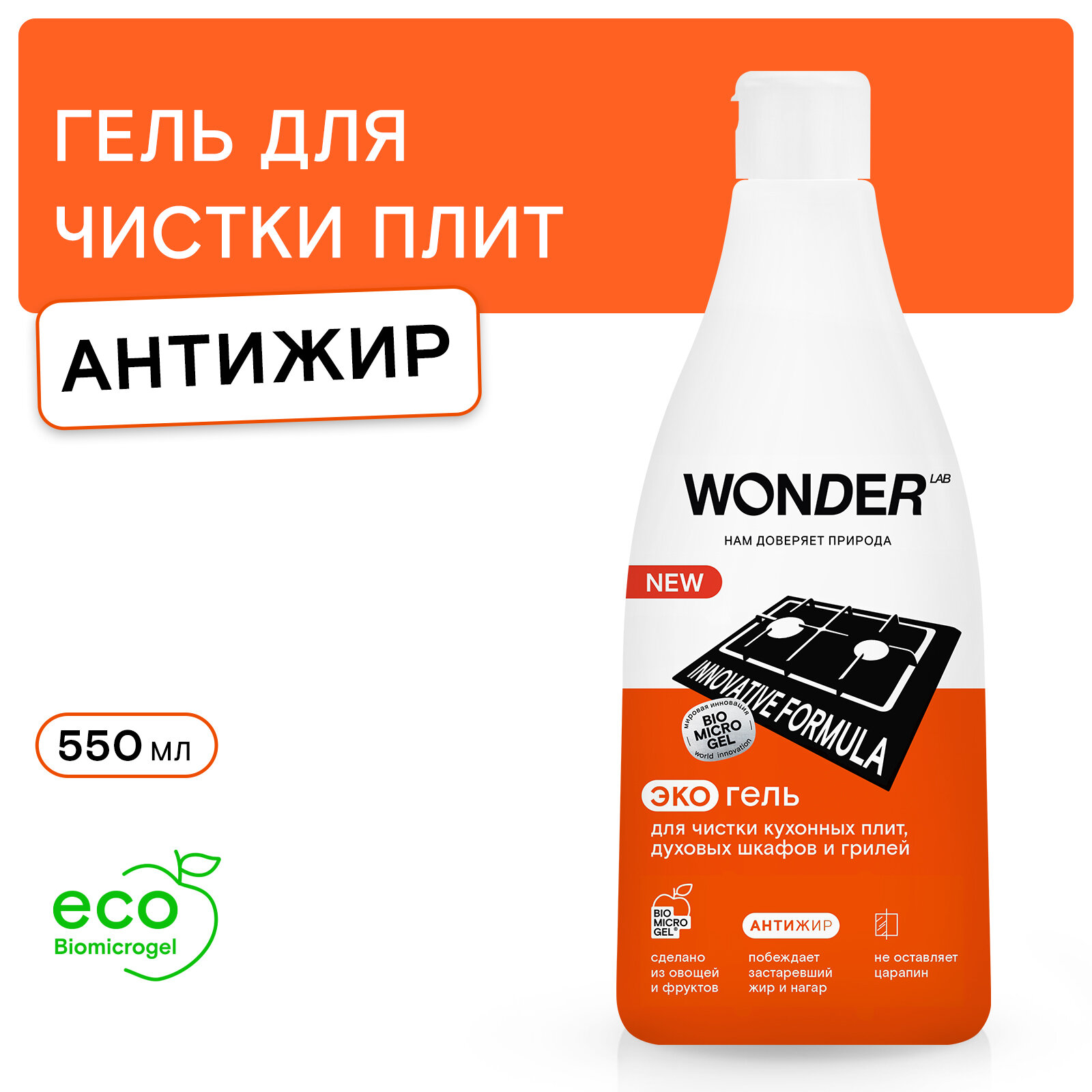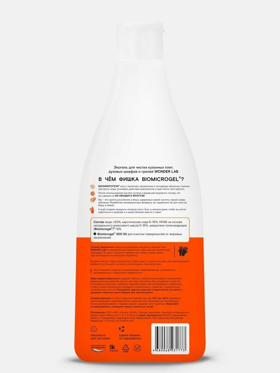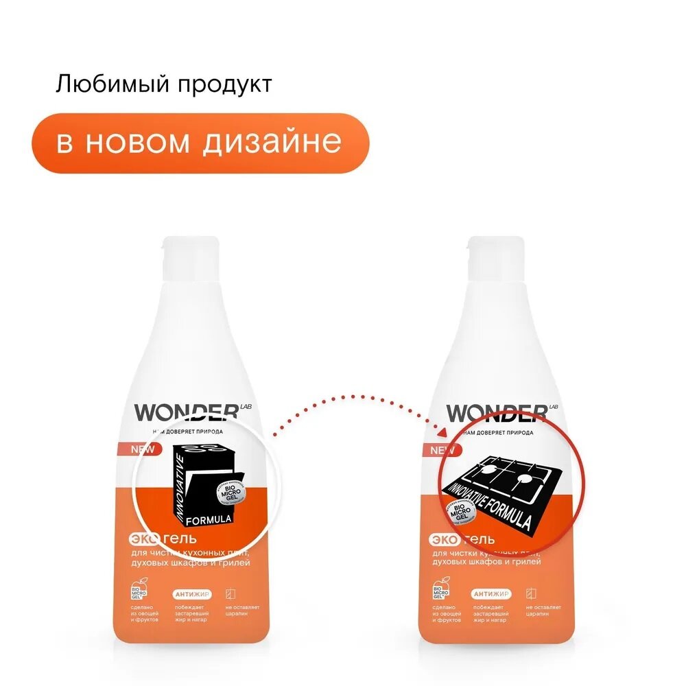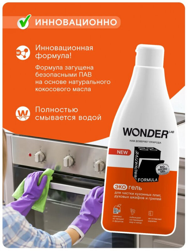 Чистящий гель WONDER LAB Эко, для кухонных плит, духовых шкафов и грилей, 0,55 л