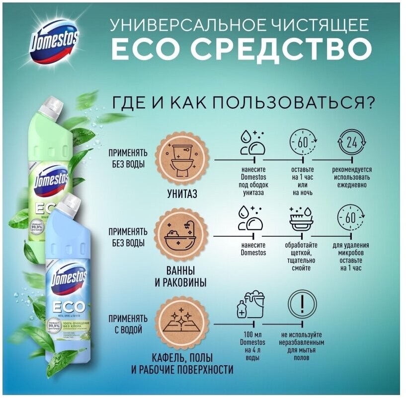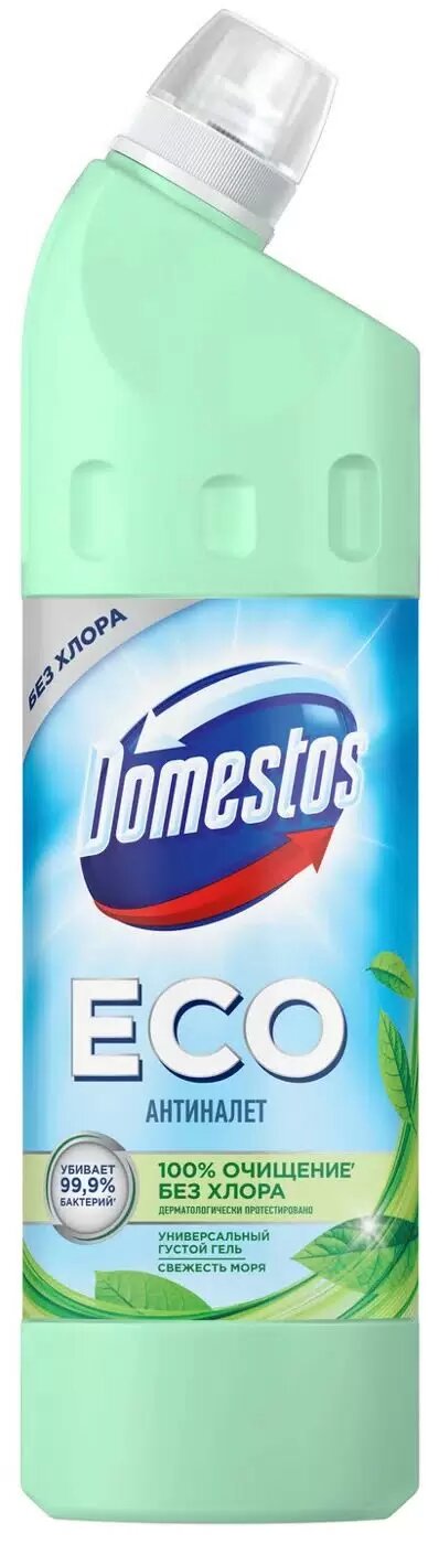 Domestos ЕСО Антиналет, универсальное чистящее эко средство для туалета и ванной, Свежесть Моря, без хлора, 750 мл