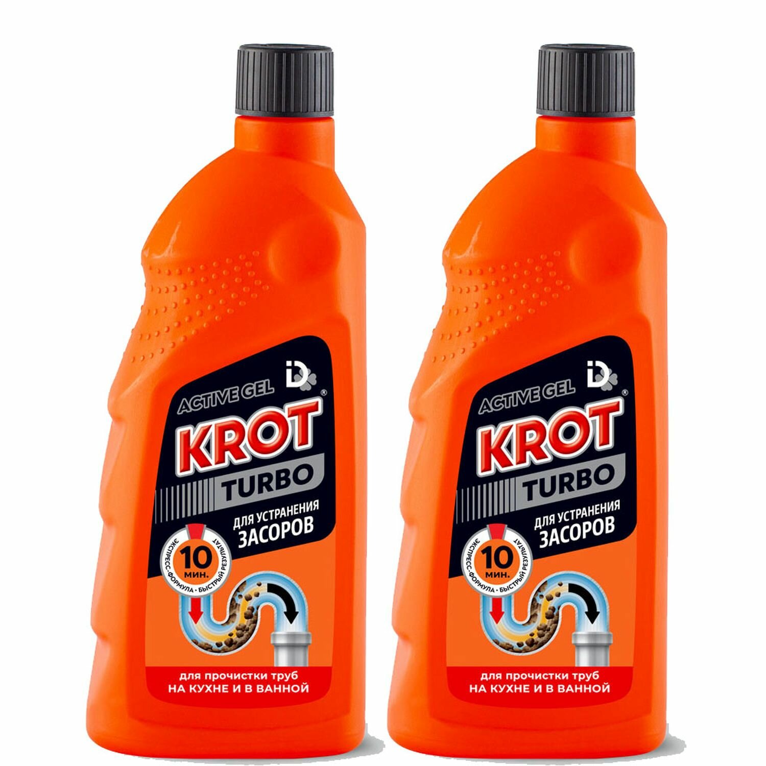 КРОТ Турбо гель 0,5 л 2 шт, средство для прочистки и очистки труб, от засоров, крот для труб, эффективная прочистка