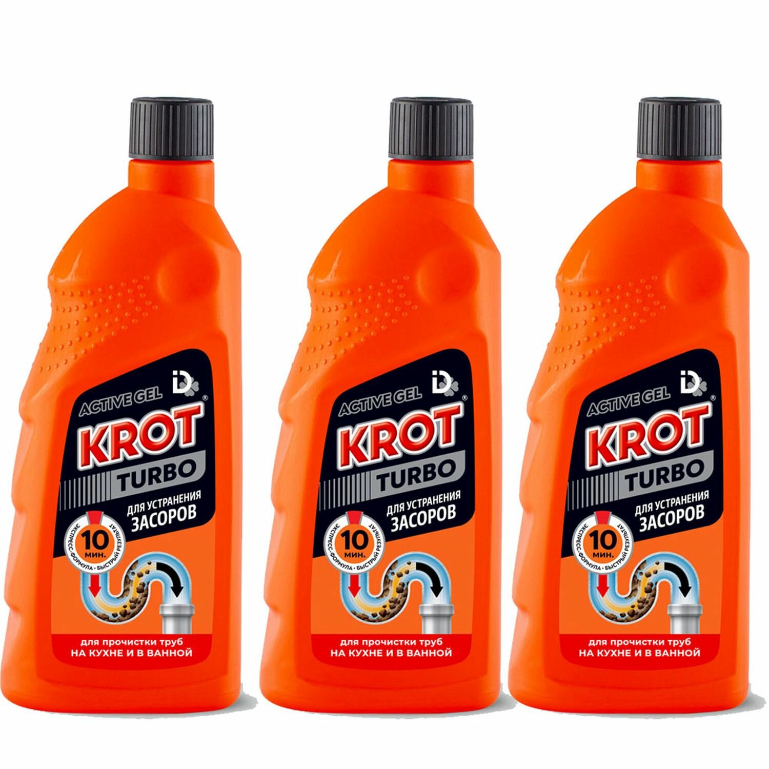 КРОТ Турбо гель 1л 3 шт, средство для прочистки и очистки труб, от засоров, крот для труб, эффективная прочистка