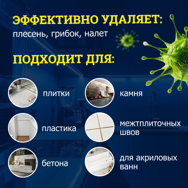 | Эффект | антибактериальный / выведение пятен / защита / защита от плесени / отбеливание / устранение накипи / устранение неприятных запахов / устранение плесени / устранение ржавчины |