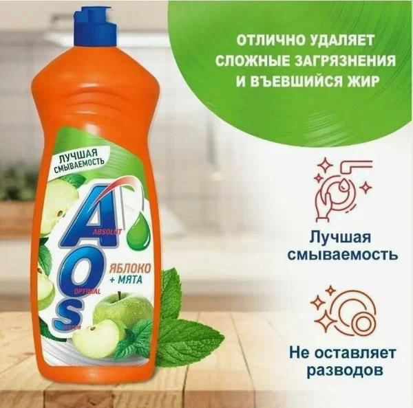AOS Средство для мытья посуды Яблоко и мята, 900 г