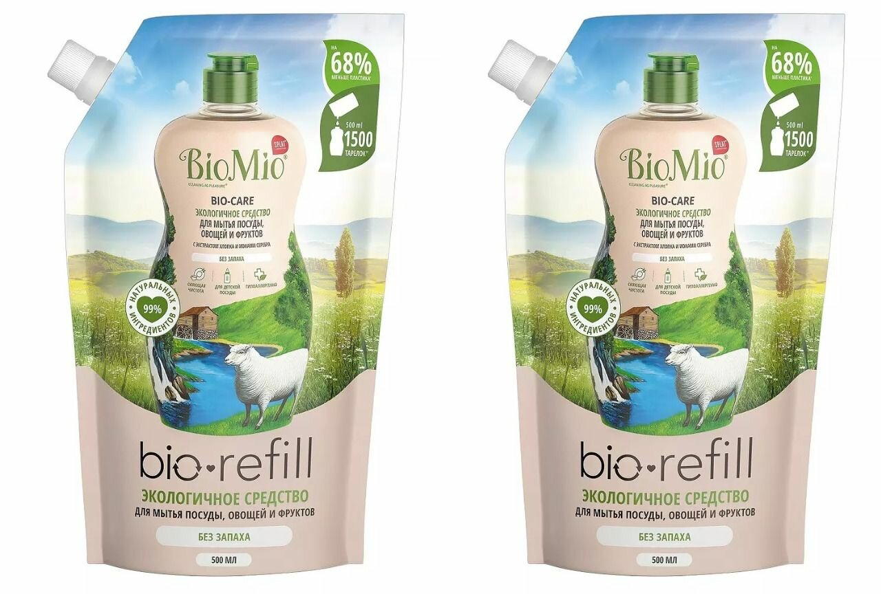 Cредство для мытья посуды BioMio Bio-Care с экстрактом хлопка и ионами серебра, экологическое, концентрат, сменный блок, 500 мл х 2шт интересное: