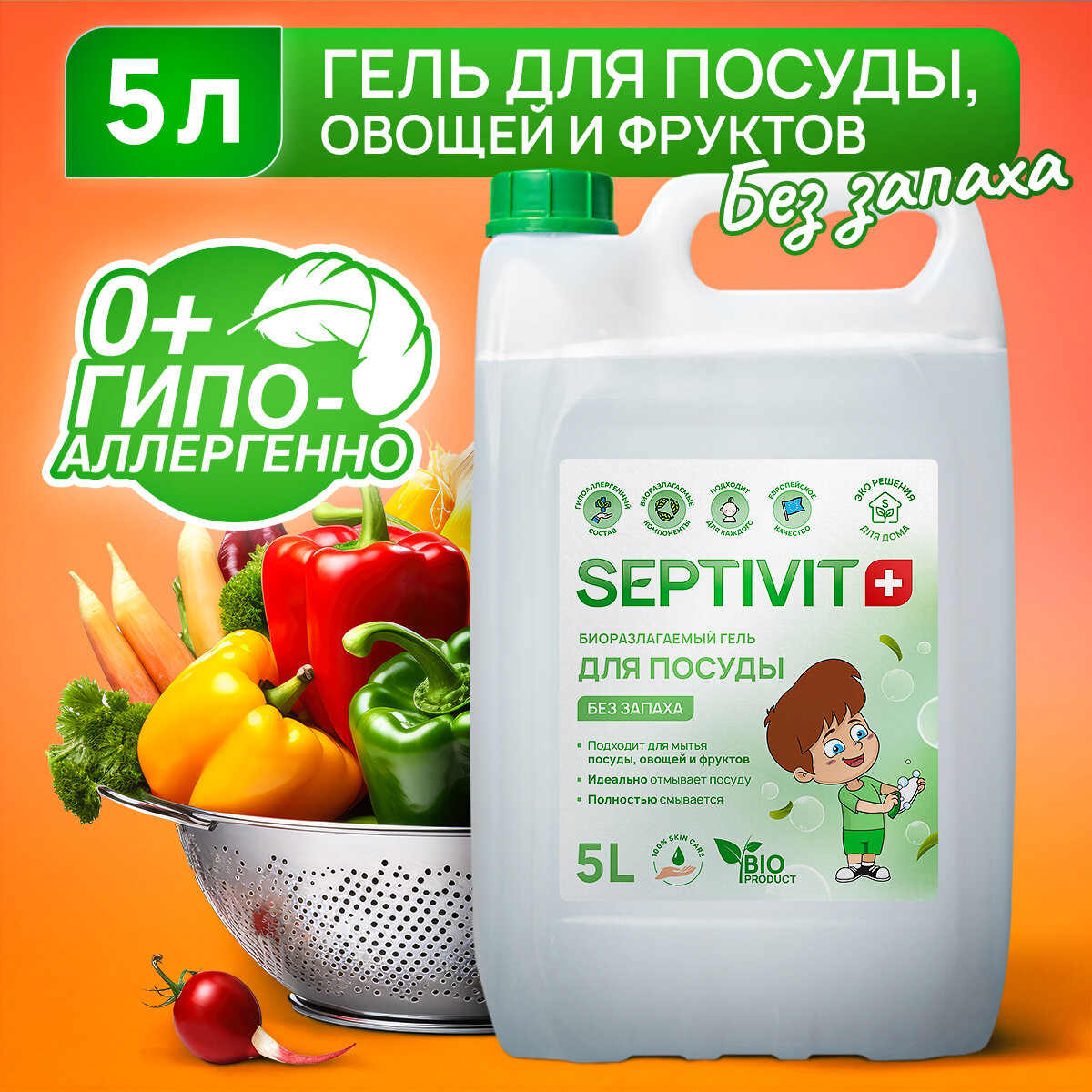 Средство для мытья посуды, овощей и фруктов SEPTIVIT / Гель для мытья посуды Септивит, Без запаха 5л