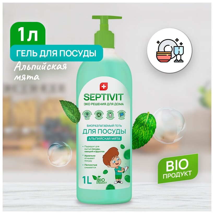 Купить SEPTIVIT Гель для посуды "Альпийская Мята", 1л 100