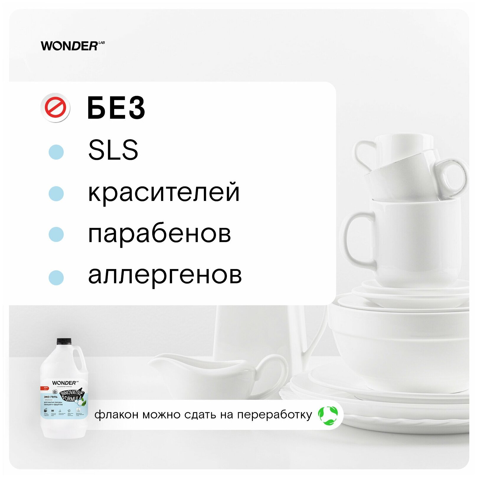 WONDER LAB Экогель для мытья посуды, овощей и фруктов Нейтральный, 550 мл
