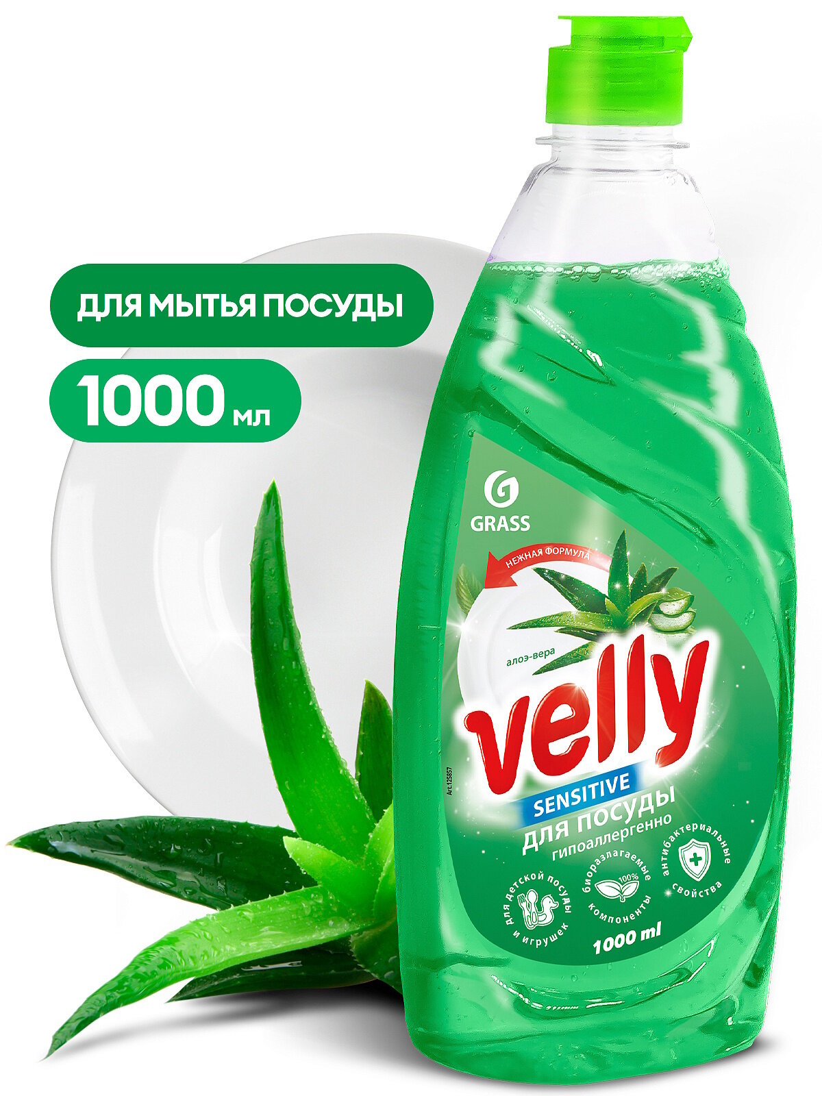 Средство для мытья посуды Velly Sensitive алоэ вера (флакон 500 мл) GRASS